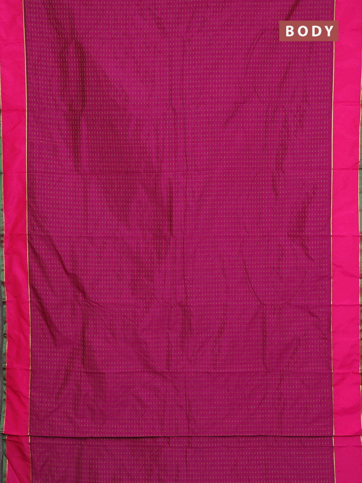 Arani semi silk saree magenta pink and dark green with allover thread weaves and rettapet zari woven border`