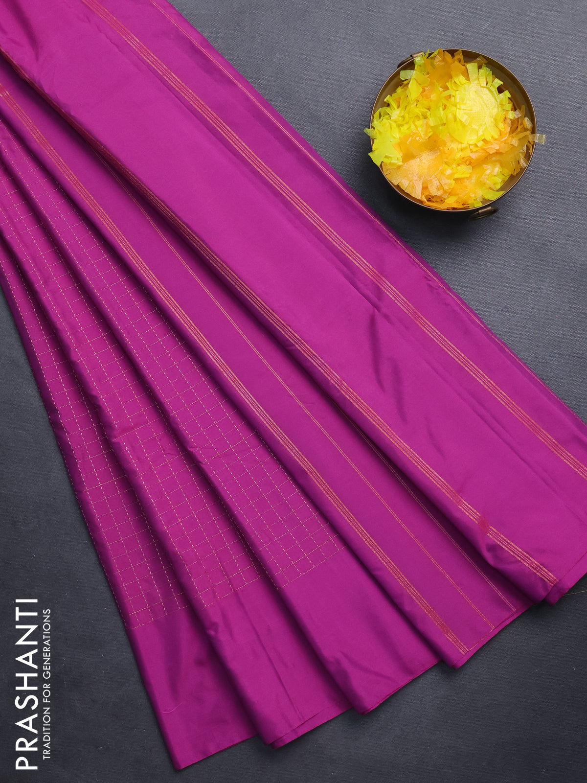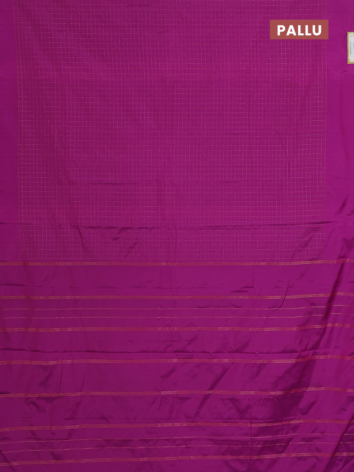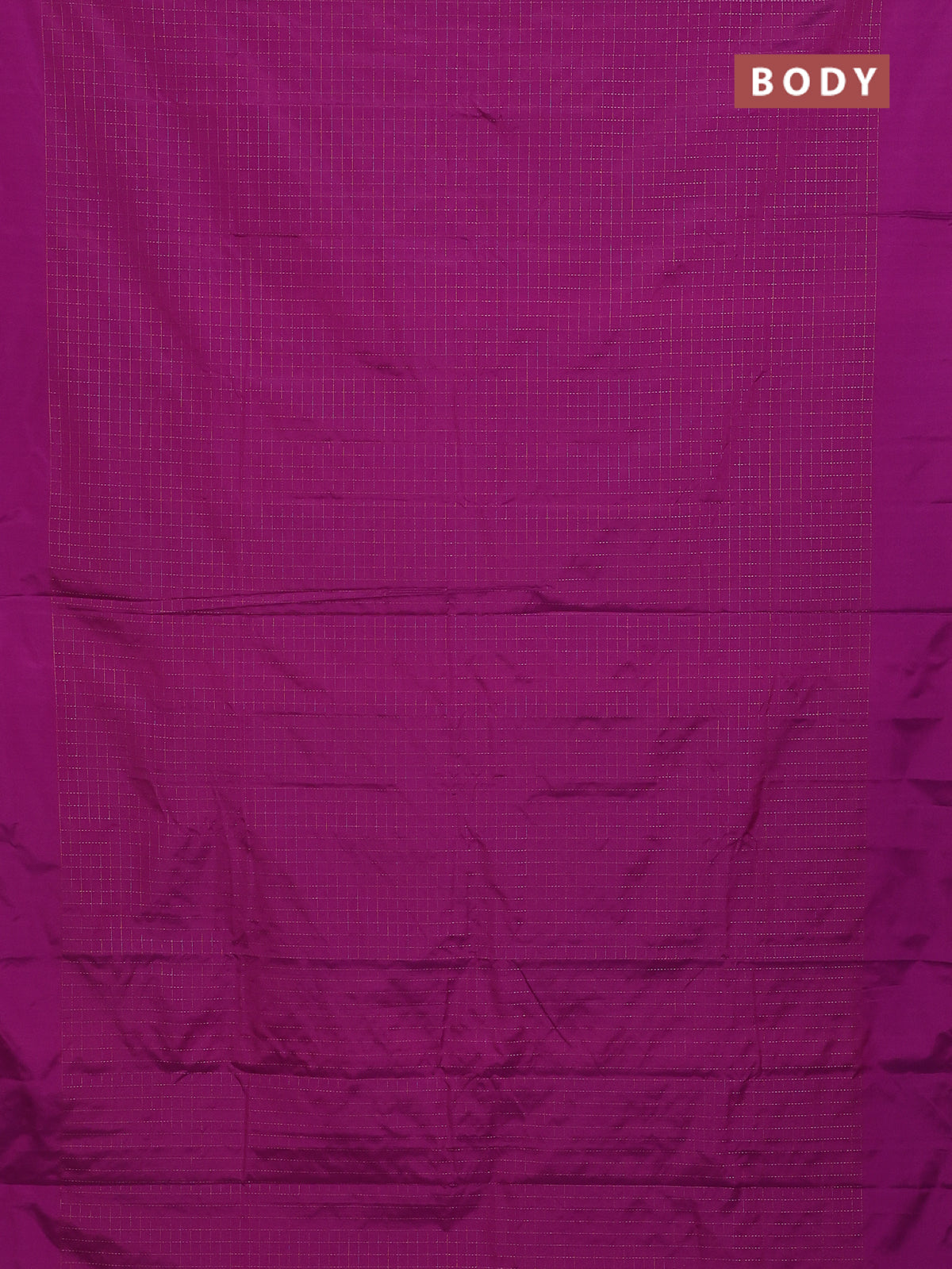 Arani semi silk saree magenta pink with allover small zari checked pattern in borderless style
