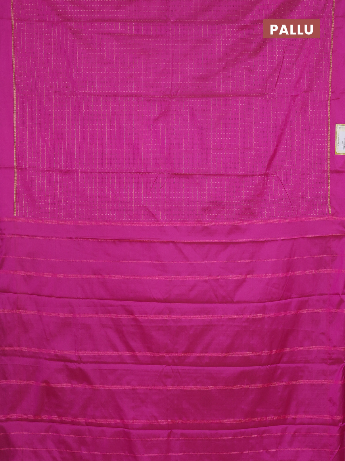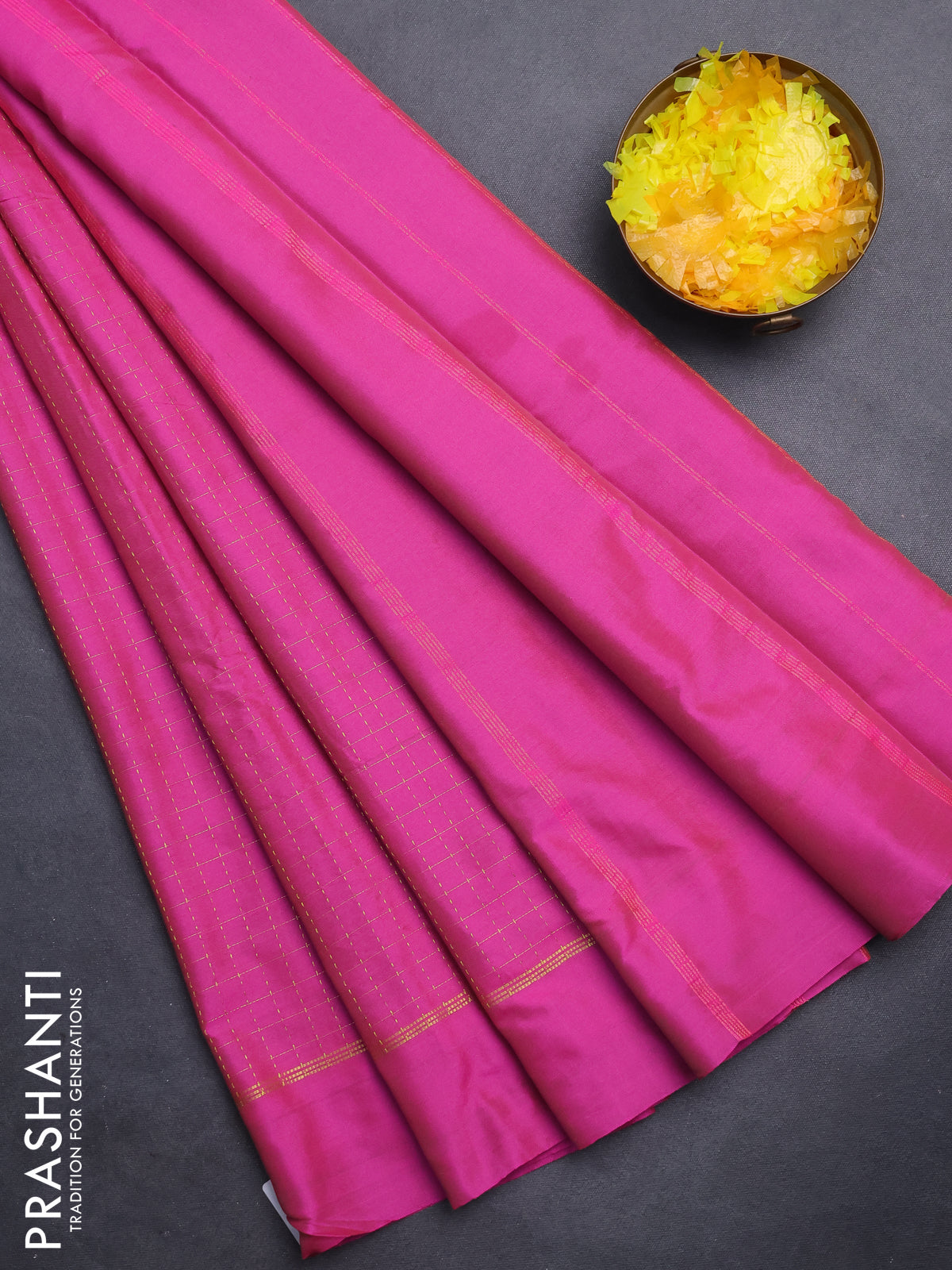 Arani semi silk saree magenta pink with allover zari checked pattern and zari woven simple border