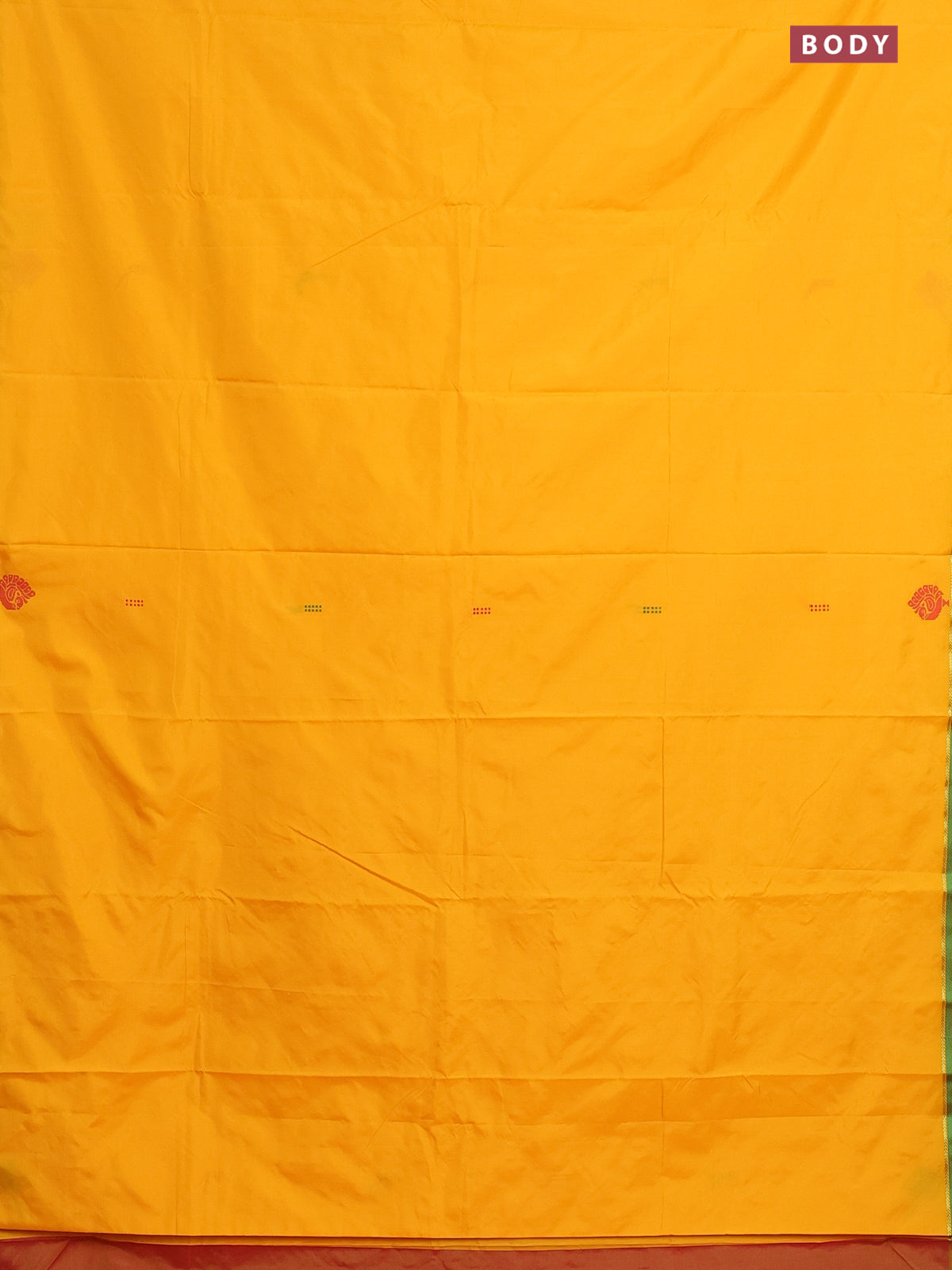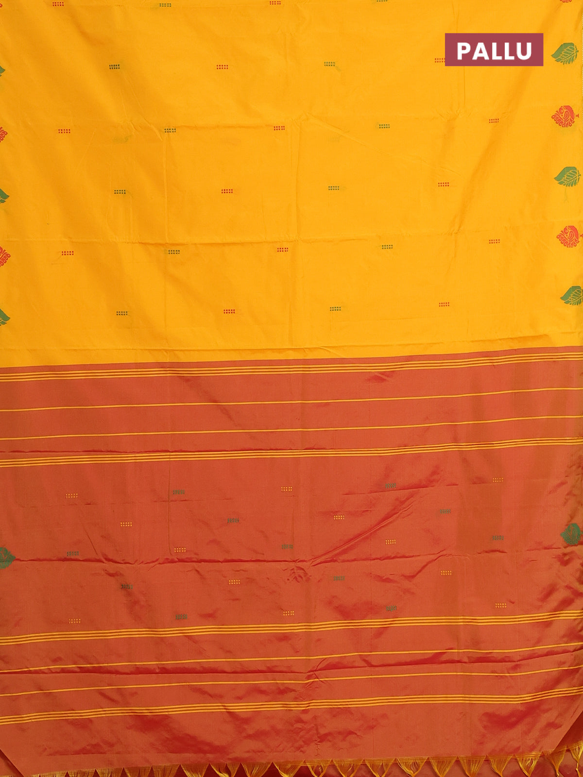 Arani semi silk saree mango yellow and dual shade of red with thread woven buttas and thread woven butta border