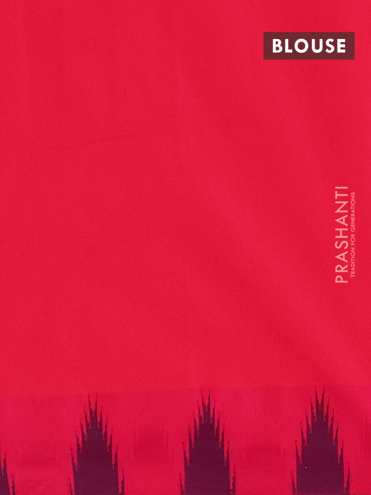 Arani semi silk saree mango yellow and pink with plain body and temple design border