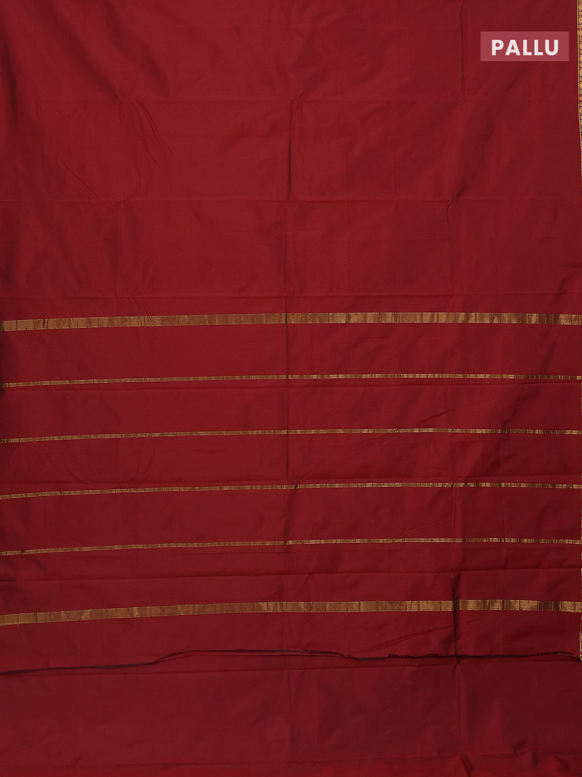 Arani semi silk saree maroon shade with plain body and small zari woven border