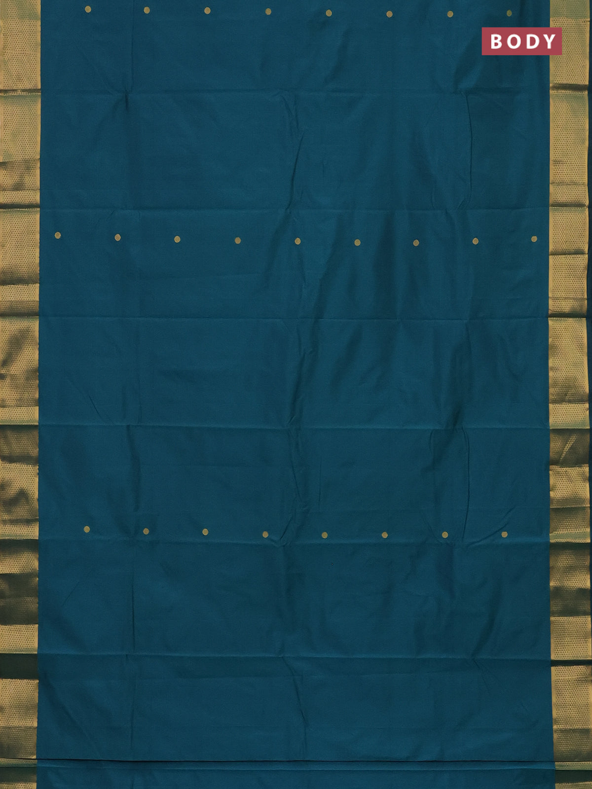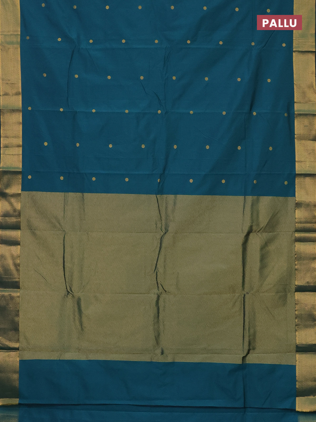 Arani semi silk saree peacock green with zari woven buttas and zari woven border