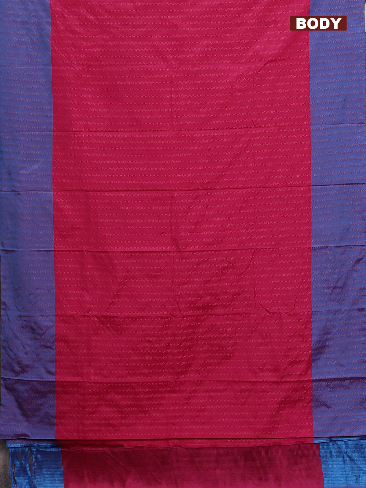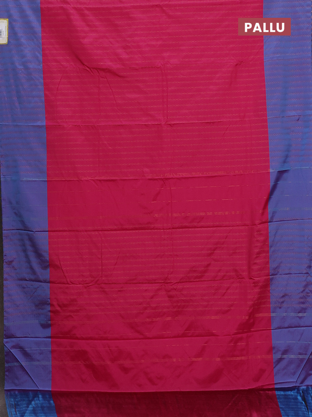 Arani semi silk saree pink and dual shade of cs blue with allover copper zari weaves and copper zari woven border
