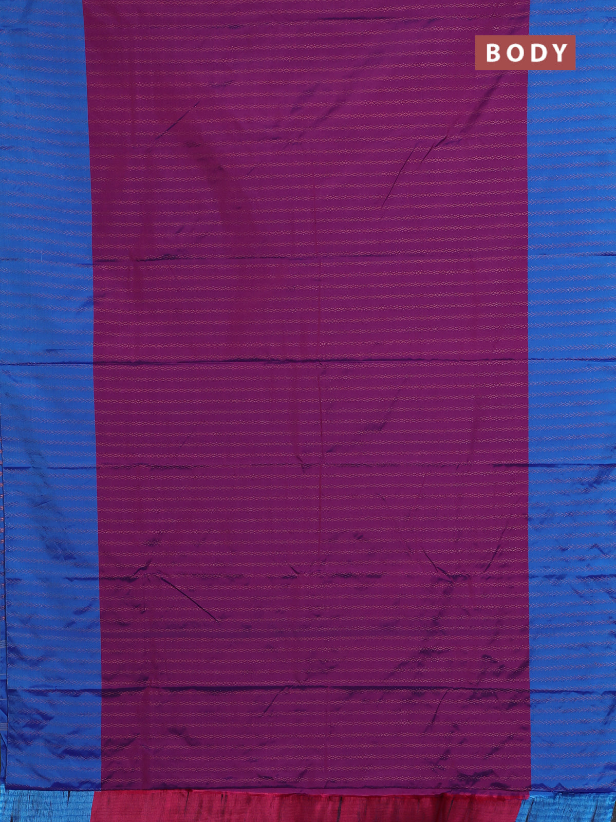 Arani semi silk saree purple and cs blue with allover copper zari weaves and copper zari woven border