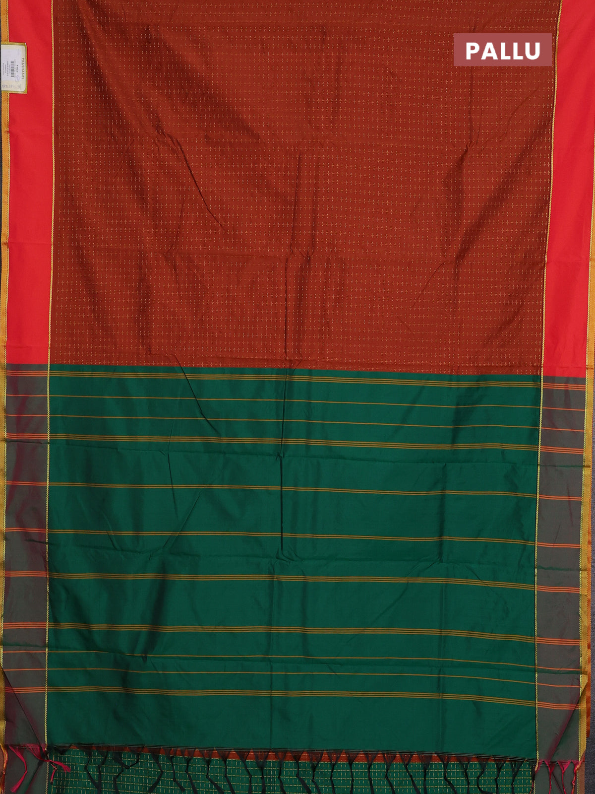 Arani semi silk saree rust shade and green with allover thread weaves and rettapet zari woven border`