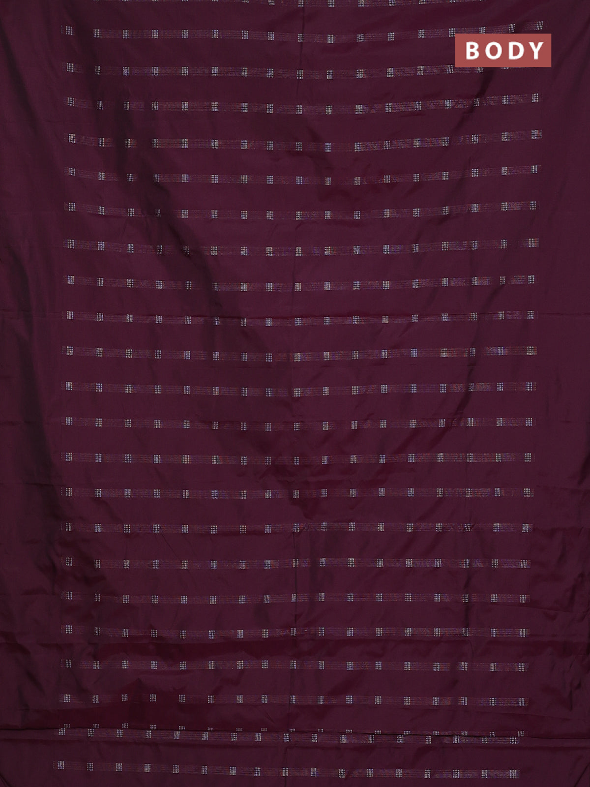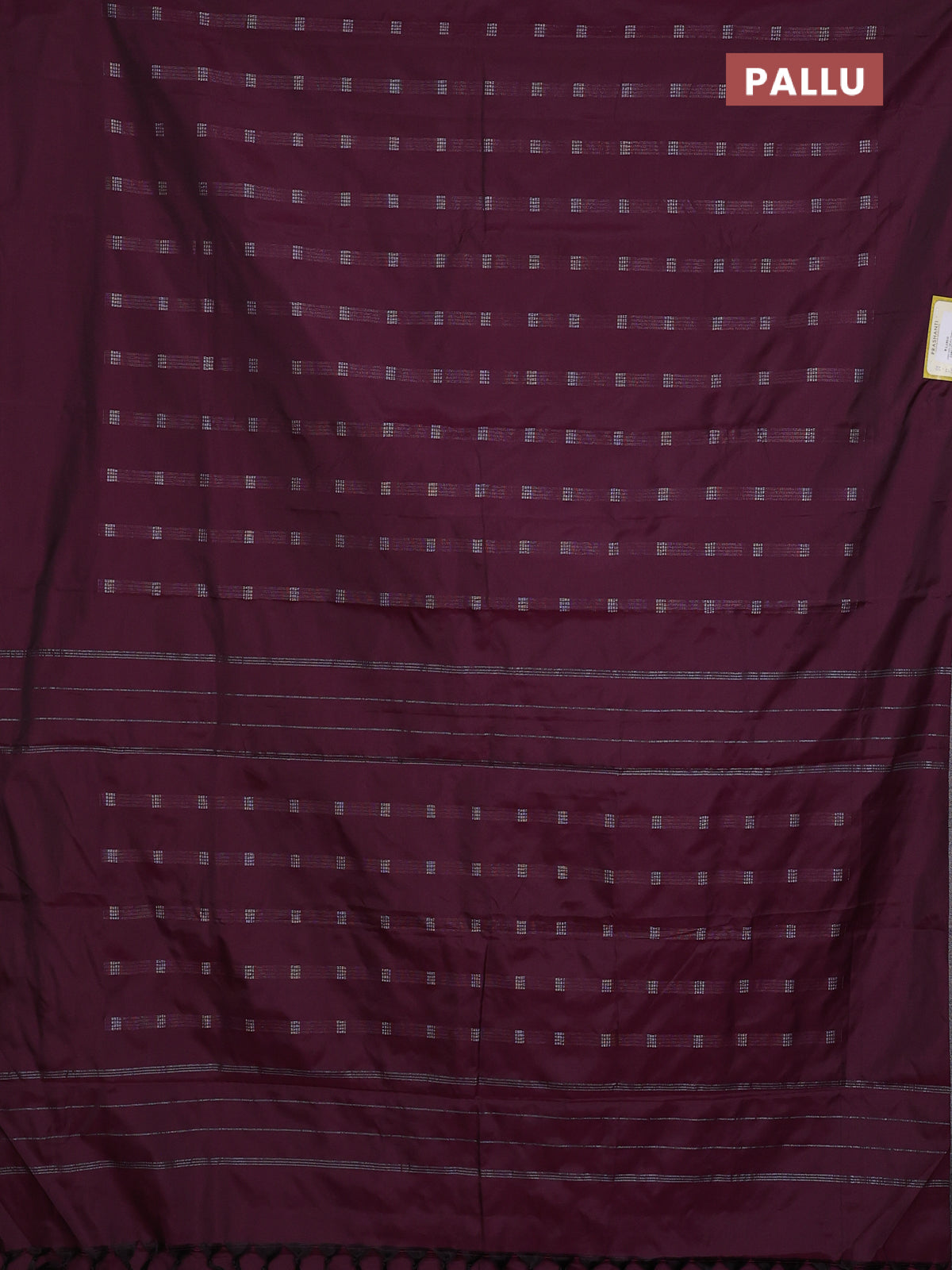 Arani semi silk saree wine shade with silver zari woven buttas in borderless style