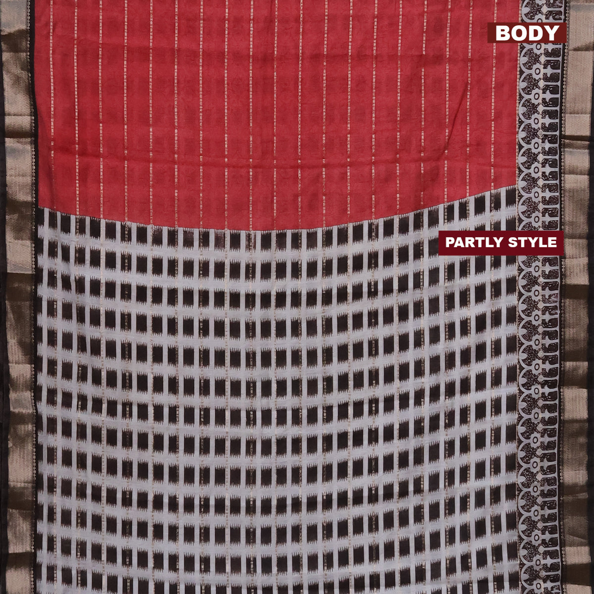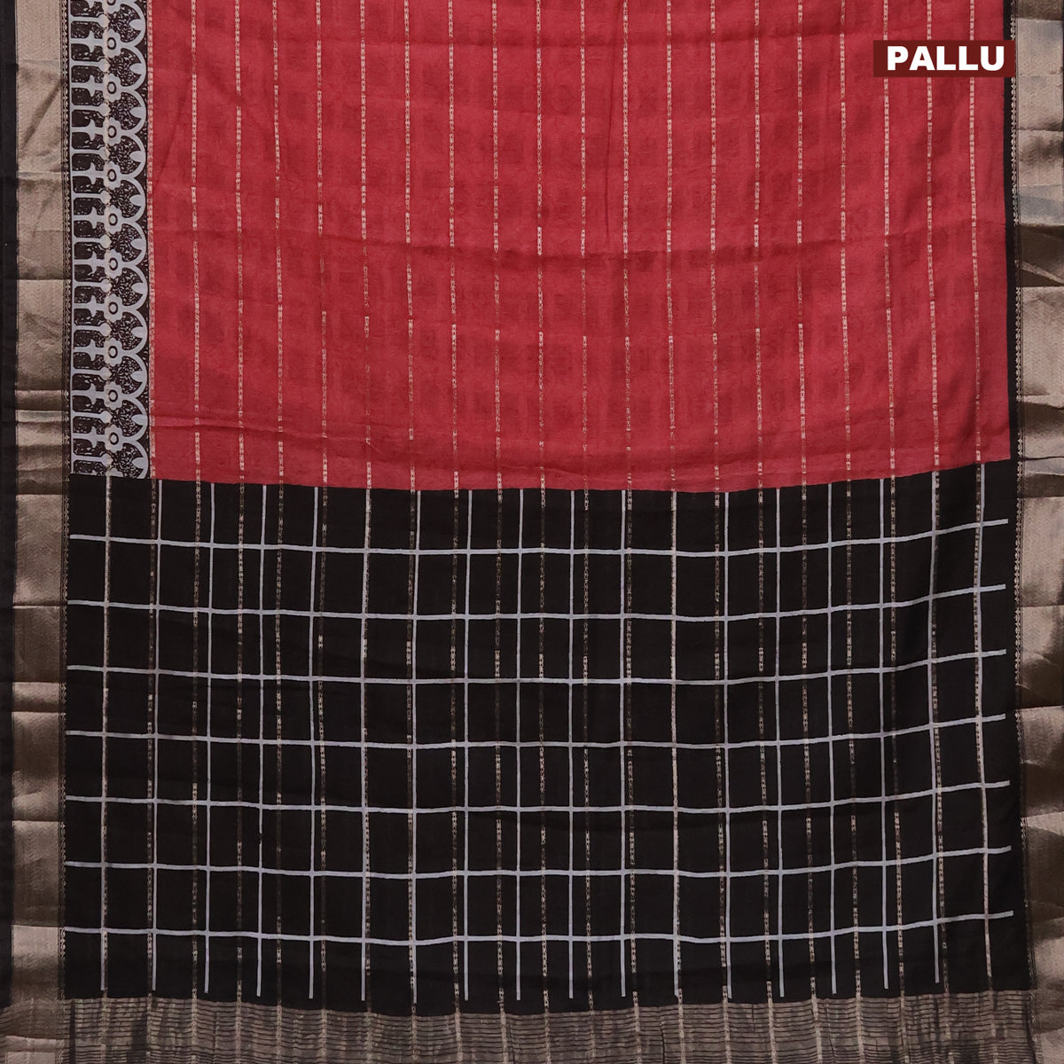 Assam partly silk saree red and black with allover prints & zari weaves and zari woven border