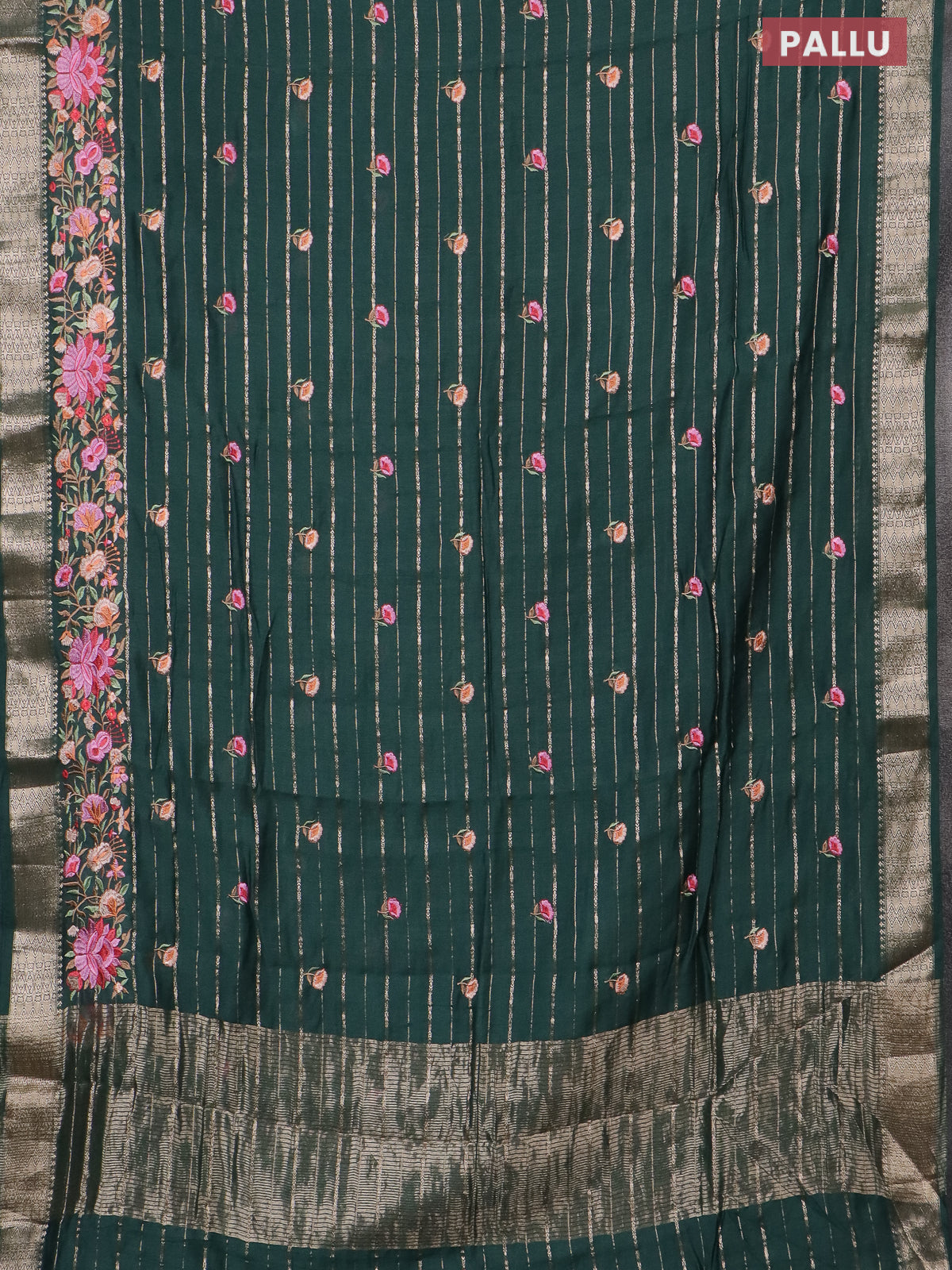 Assam silk saree bottle green with allover zari weaves & floral embroidery work buttas and zari woven border