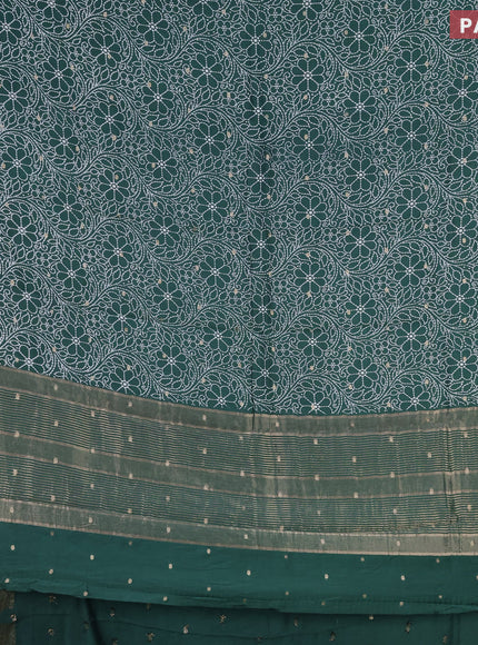 Assam silk saree dark green with allover floral prints & zari buttas and zari woven border