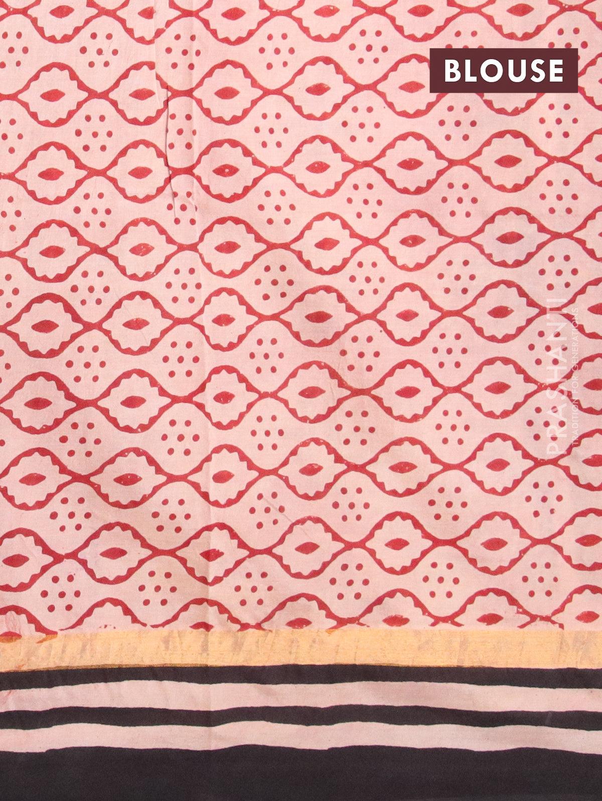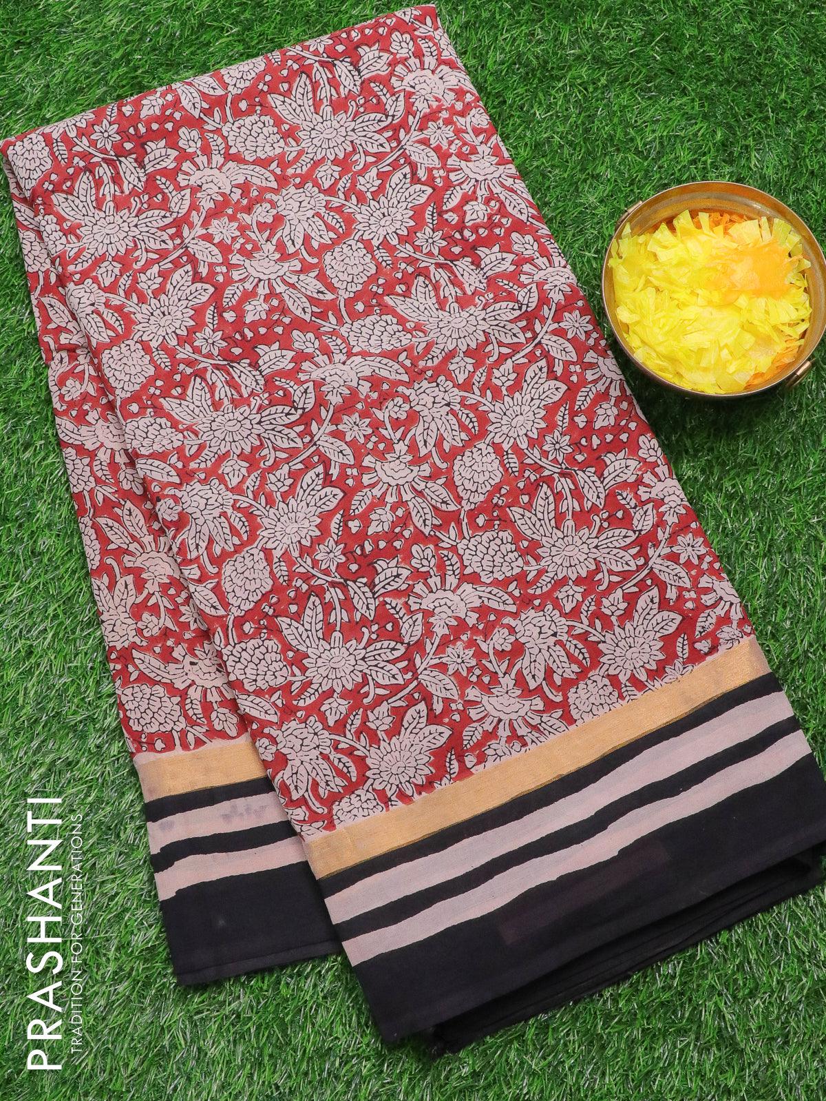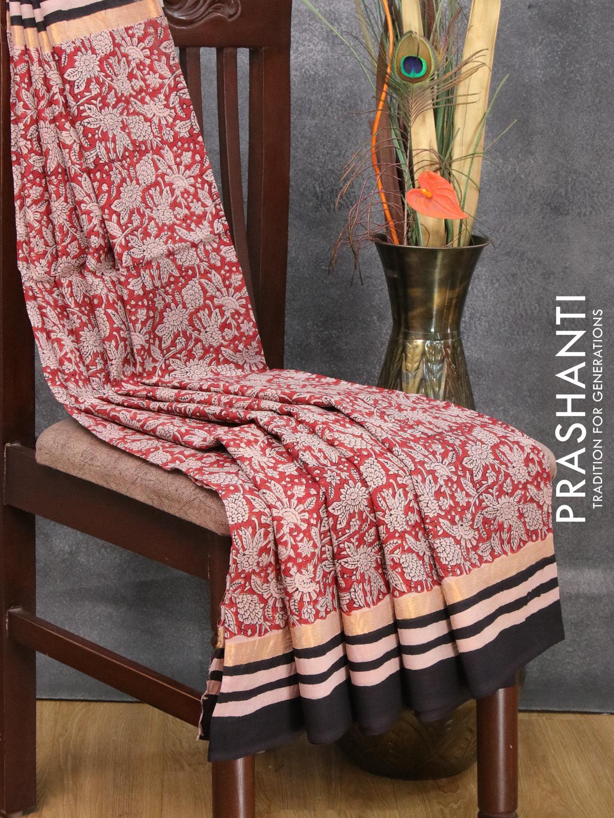 Assam silk saree maroon and black with allover prints and zari woven simple border
