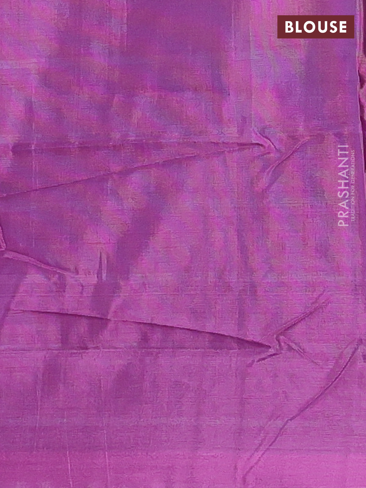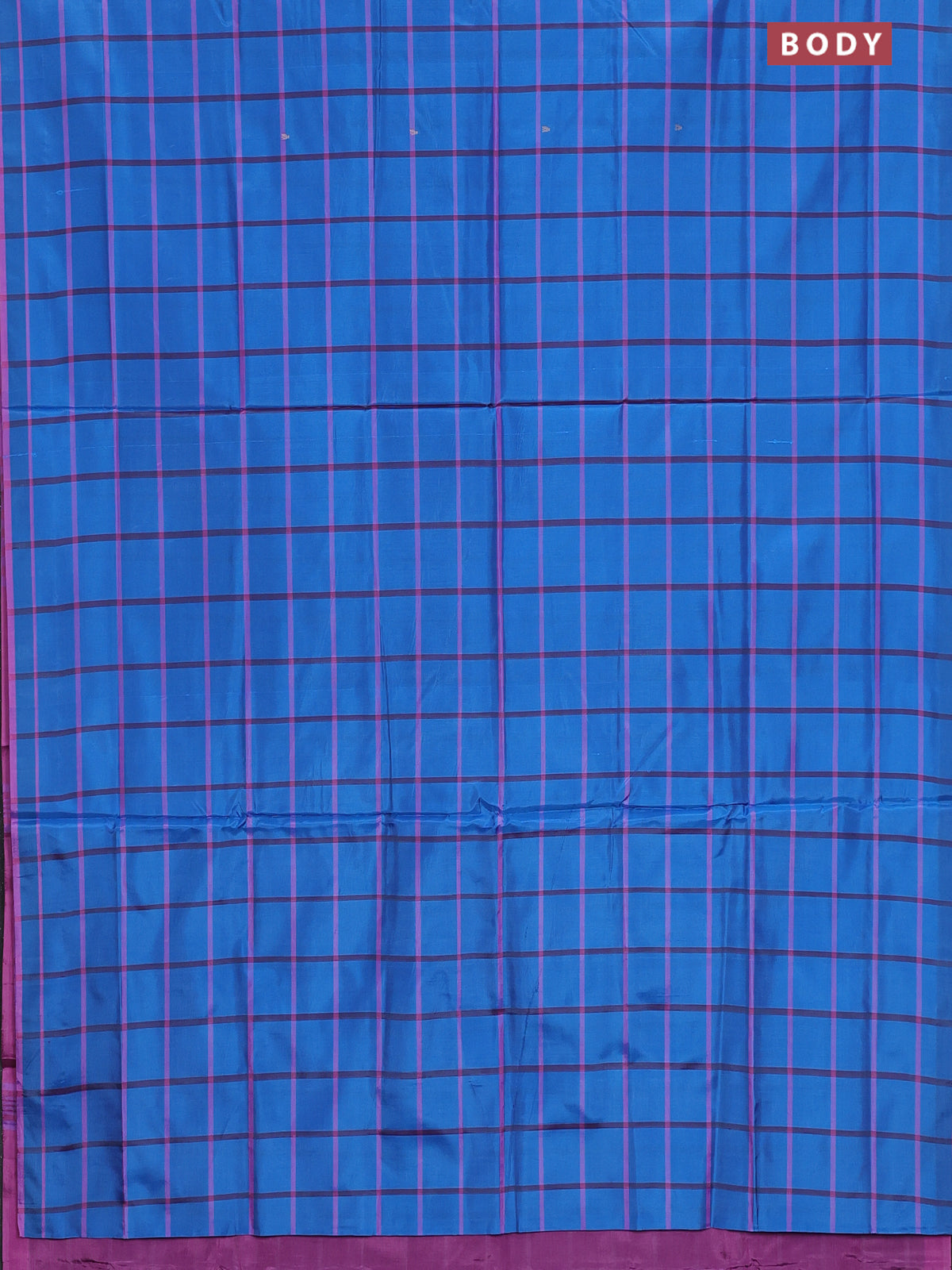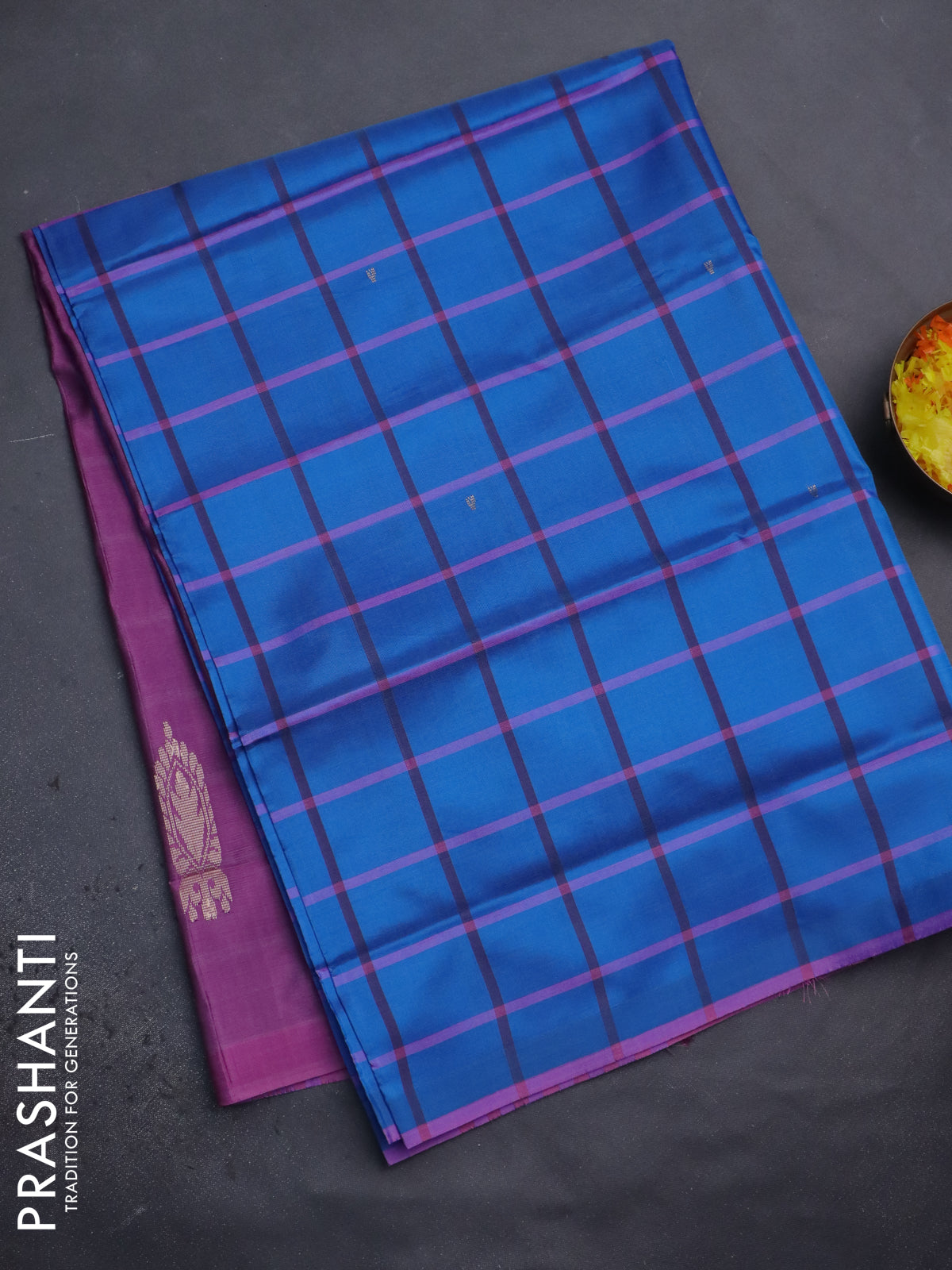 Banana pith saree cs blue and mild purple with allover checked pattern and piping border