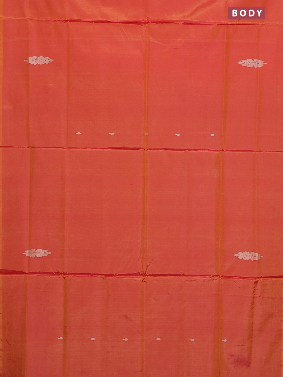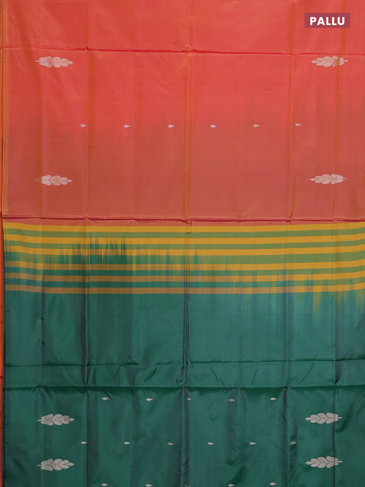 Banana pith saree dual shade of mango yellow and dark green with thread woven buttas in borderless style