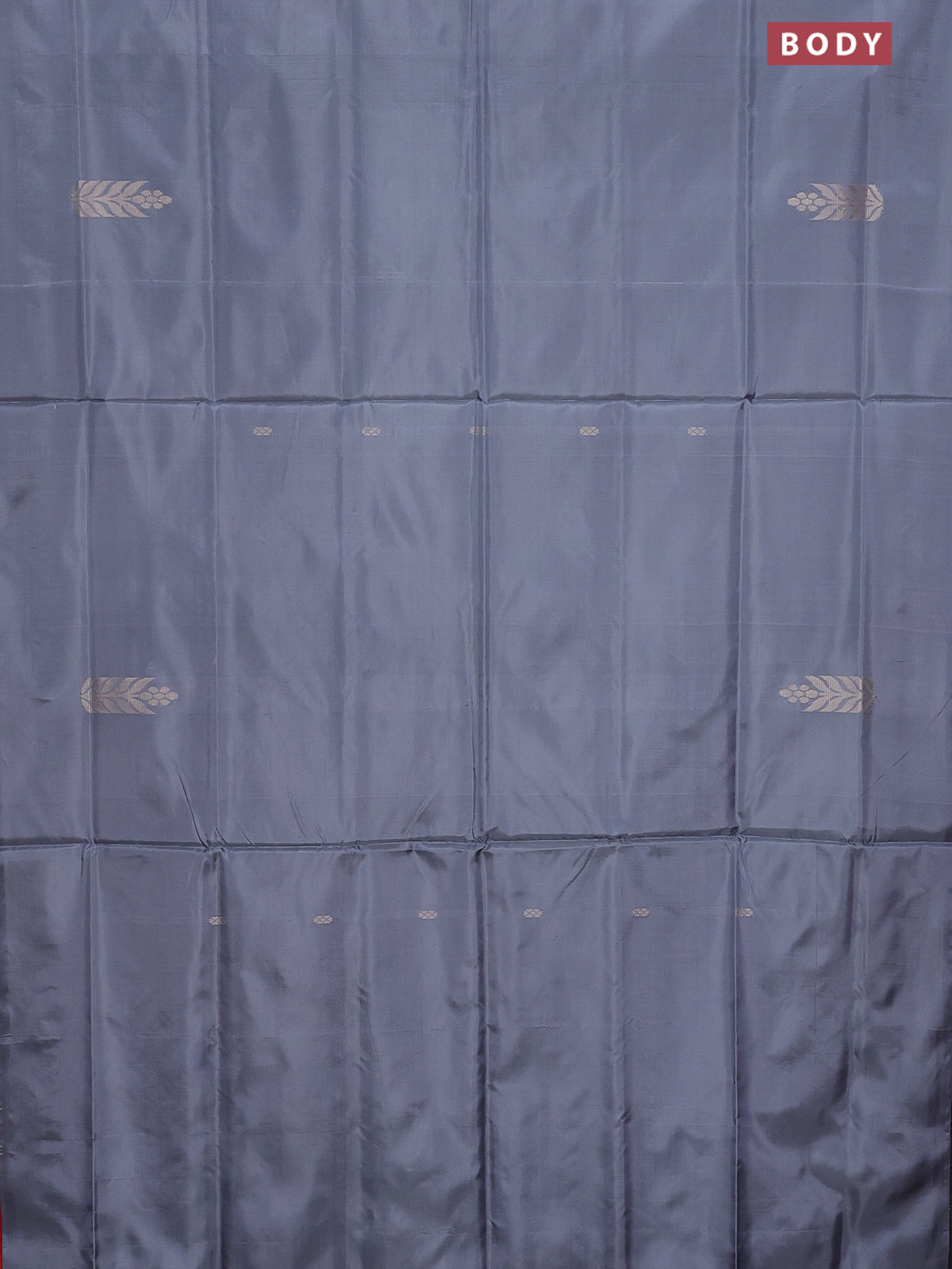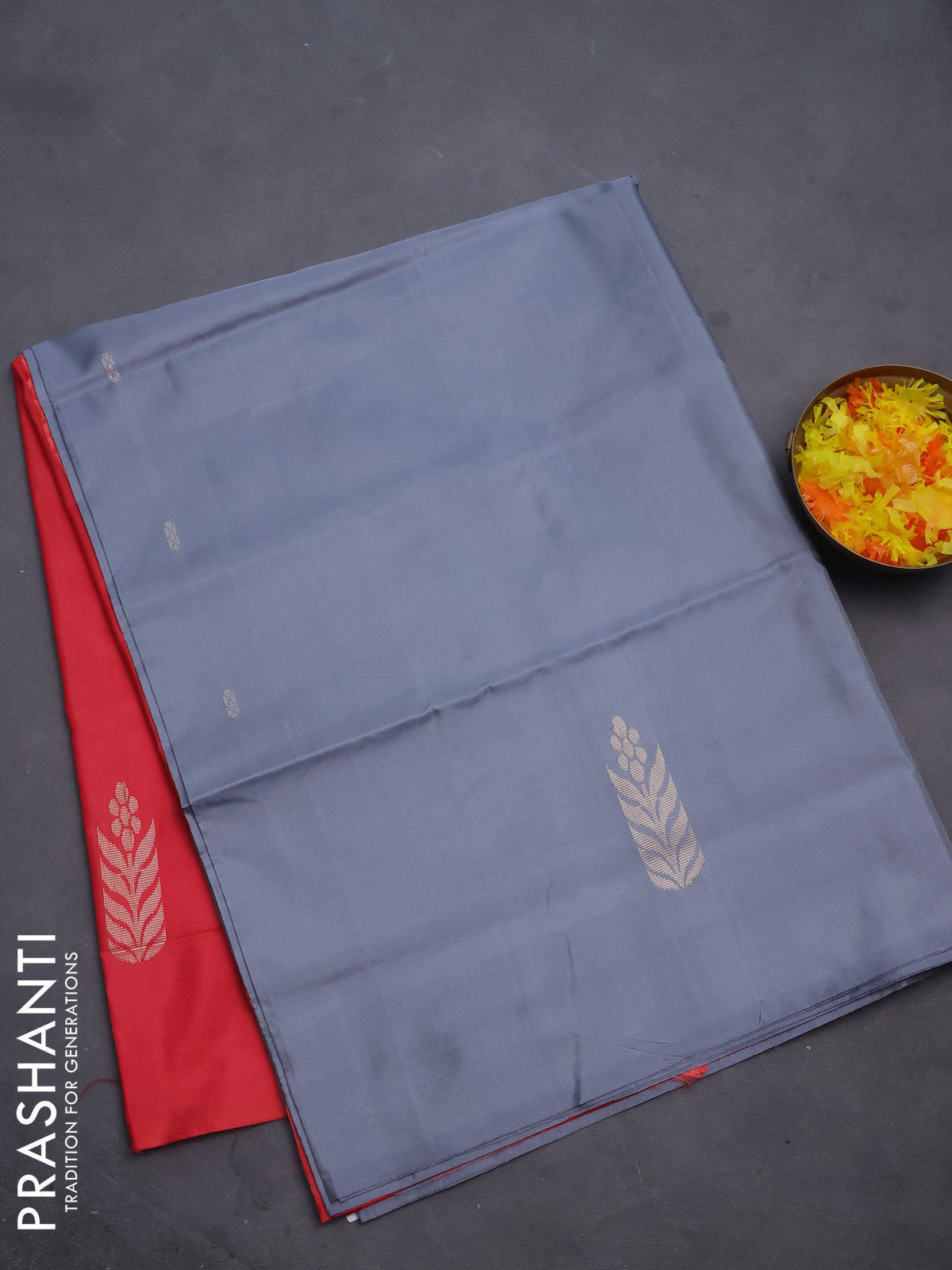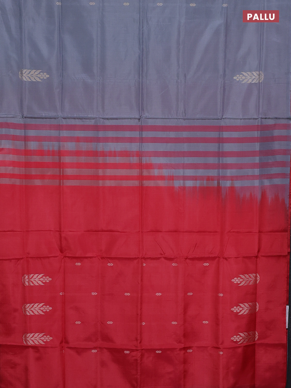 Banana pith saree grey and red with thread woven buttas in borderless style