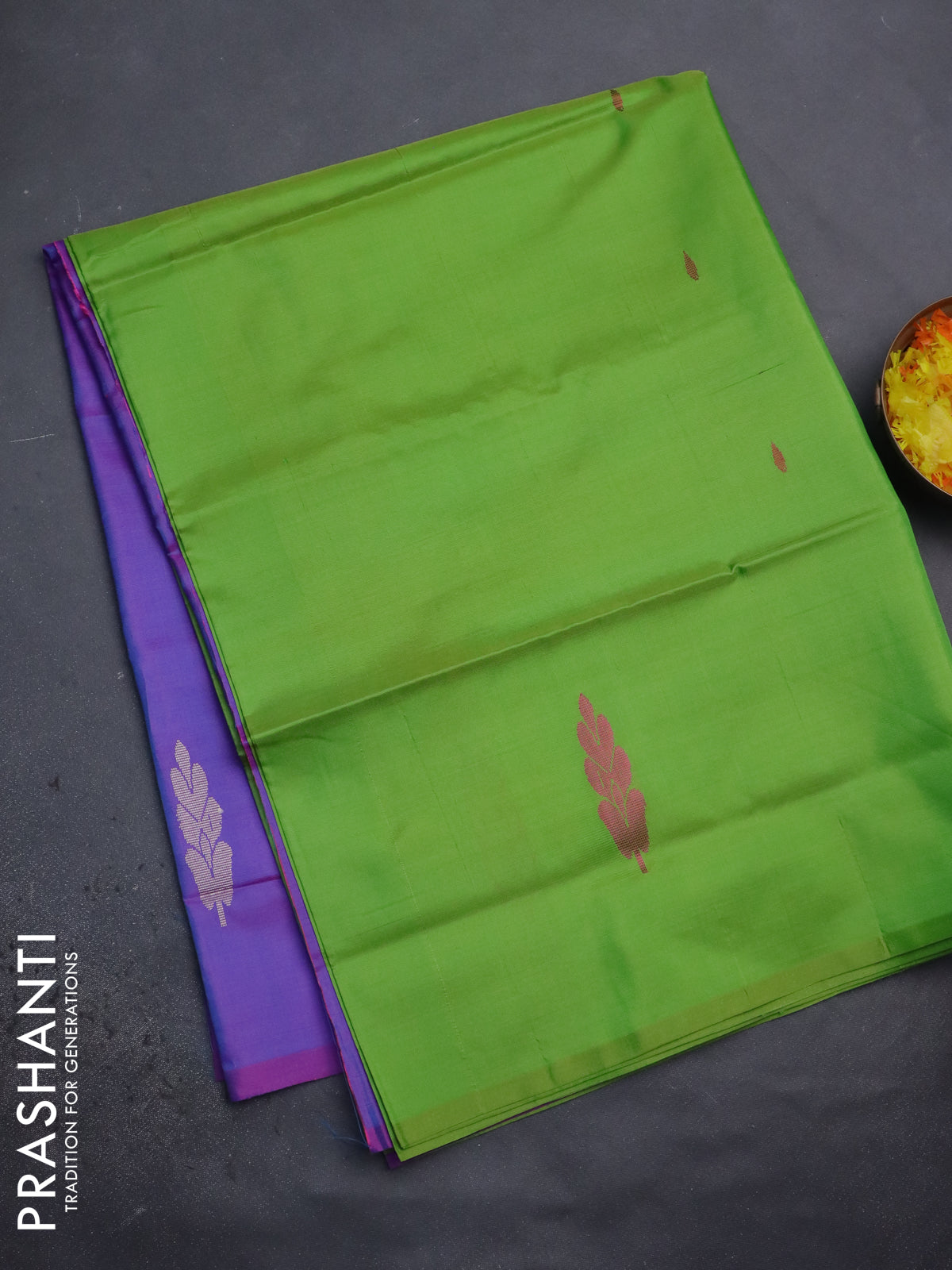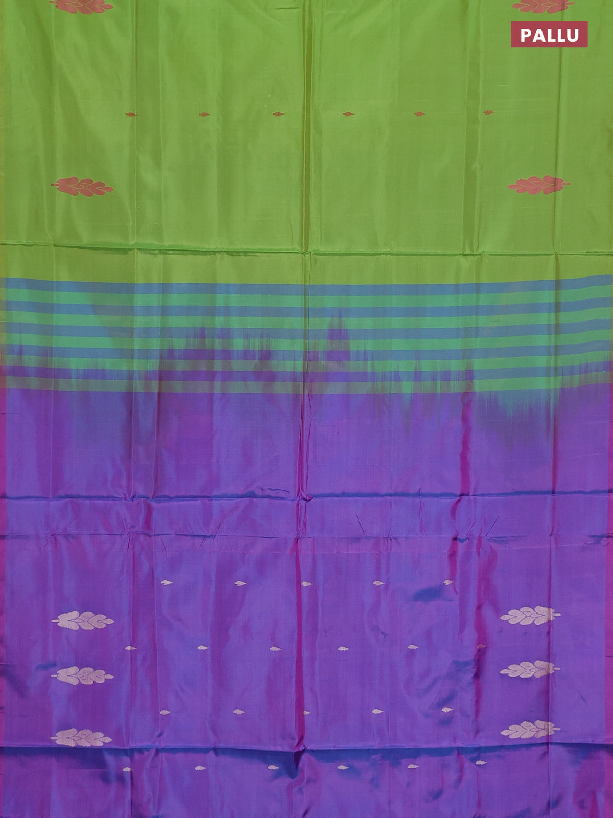 Banana pith saree light green and dual shade of purple with thread woven buttas in borderless style