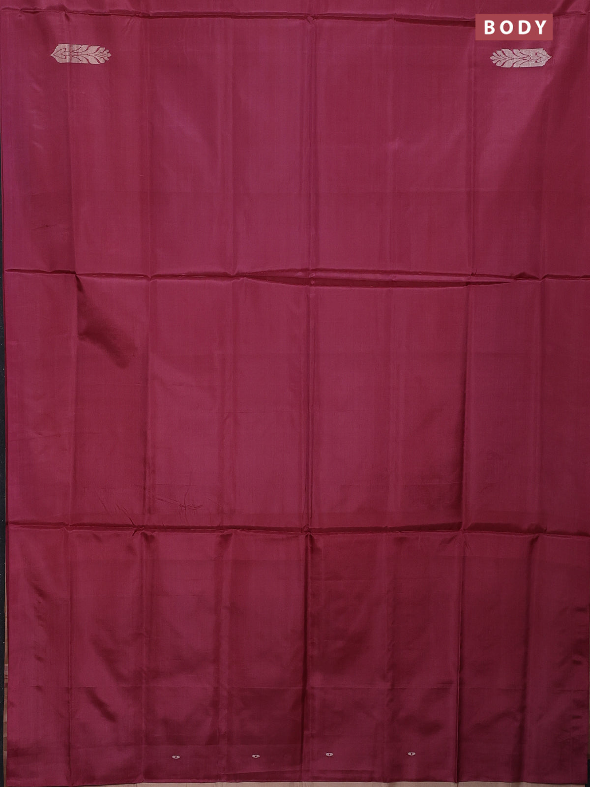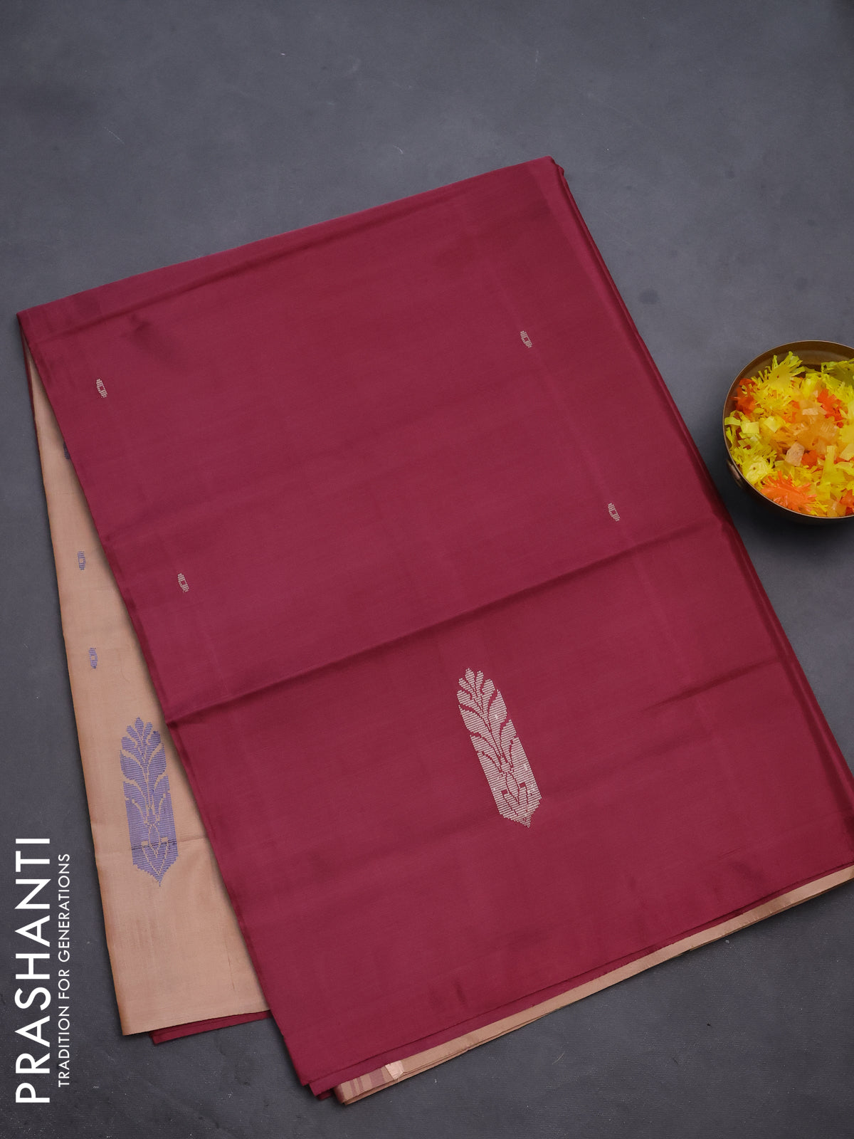 Banana pith saree maeoon and sandal with thread woven buttas in borderless style