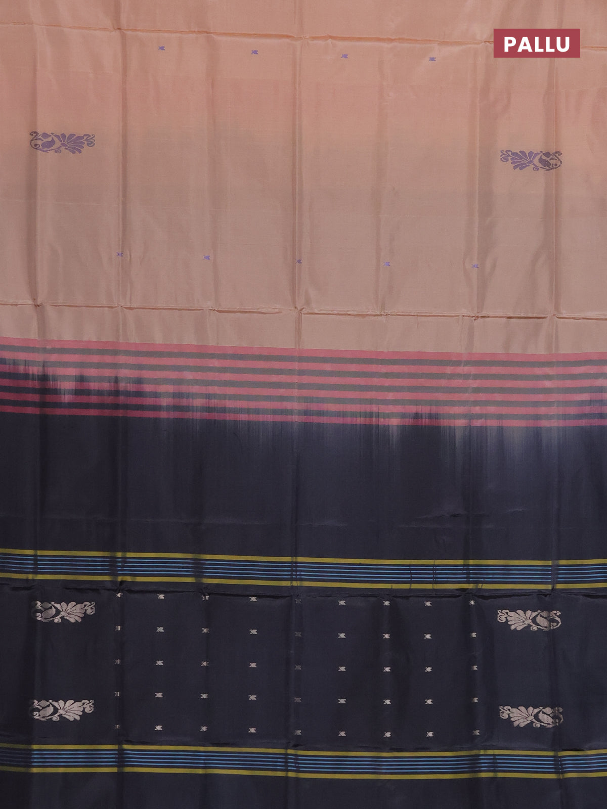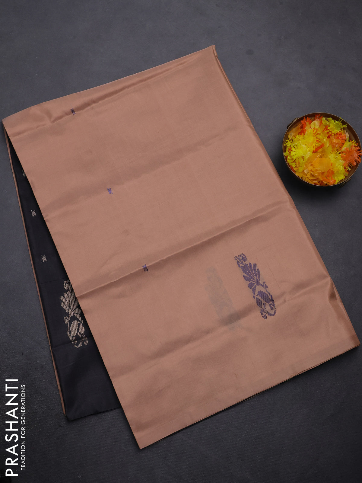 Banana pith saree sandal and black with thread woven buttas in borderless style