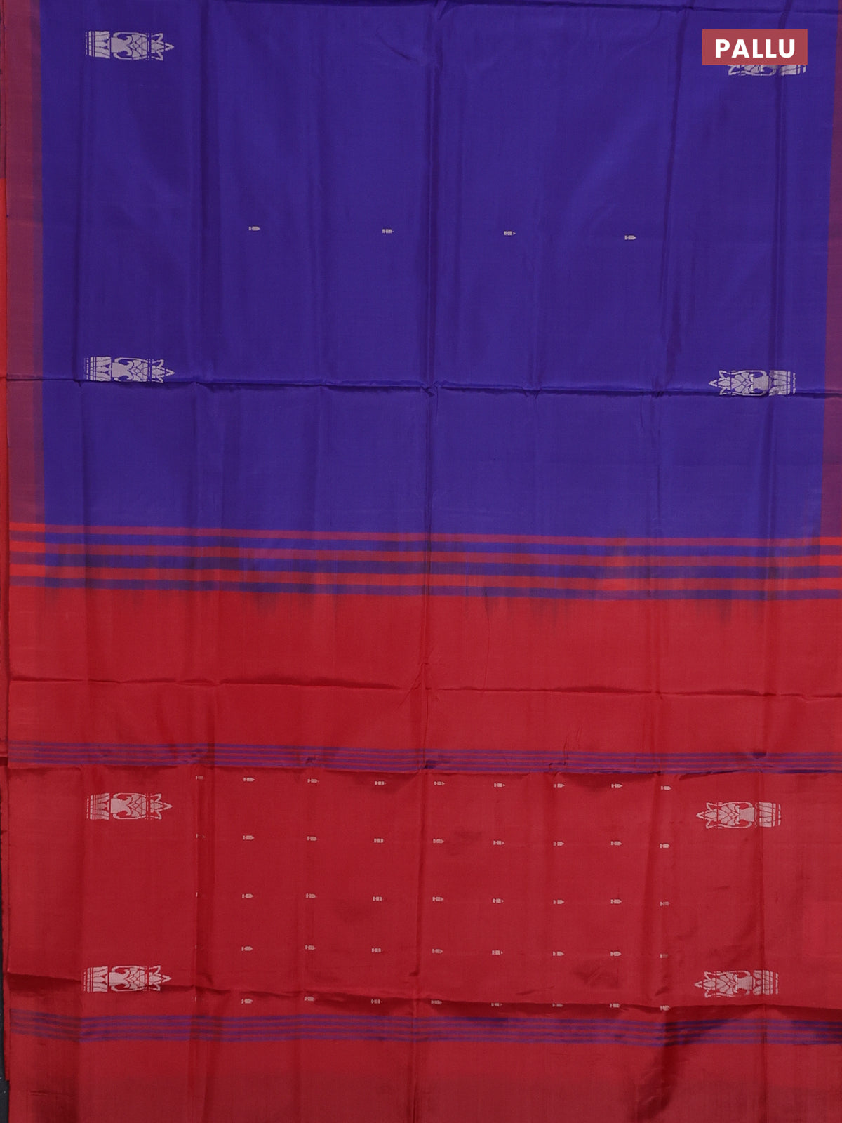 Banana pith saree violet and red with thread woven buttas and contrast border
