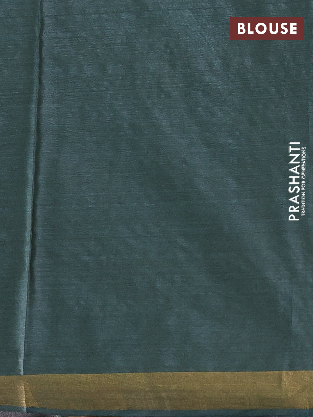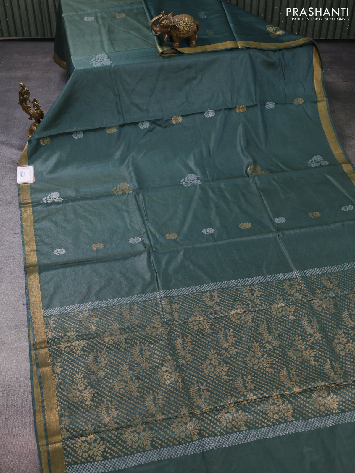 Banana silk saree dark green with silver & gold zari woven floral buttas and zari woven border