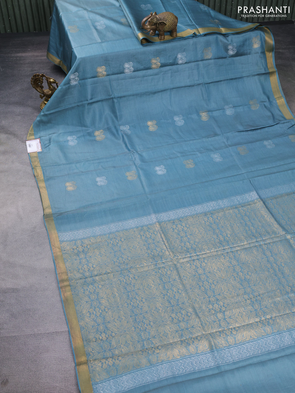 Banana silk saree pastel green with silver & gold zari woven paisley buttas and zari woven border