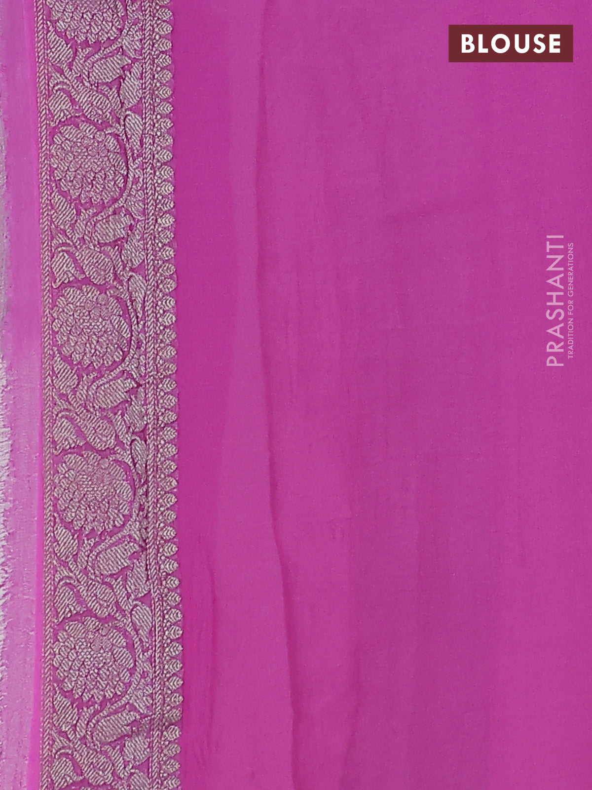Banarasi chiffon silk saree off white and lotus pink with silver zari woven buttas and floral silver zari woven border