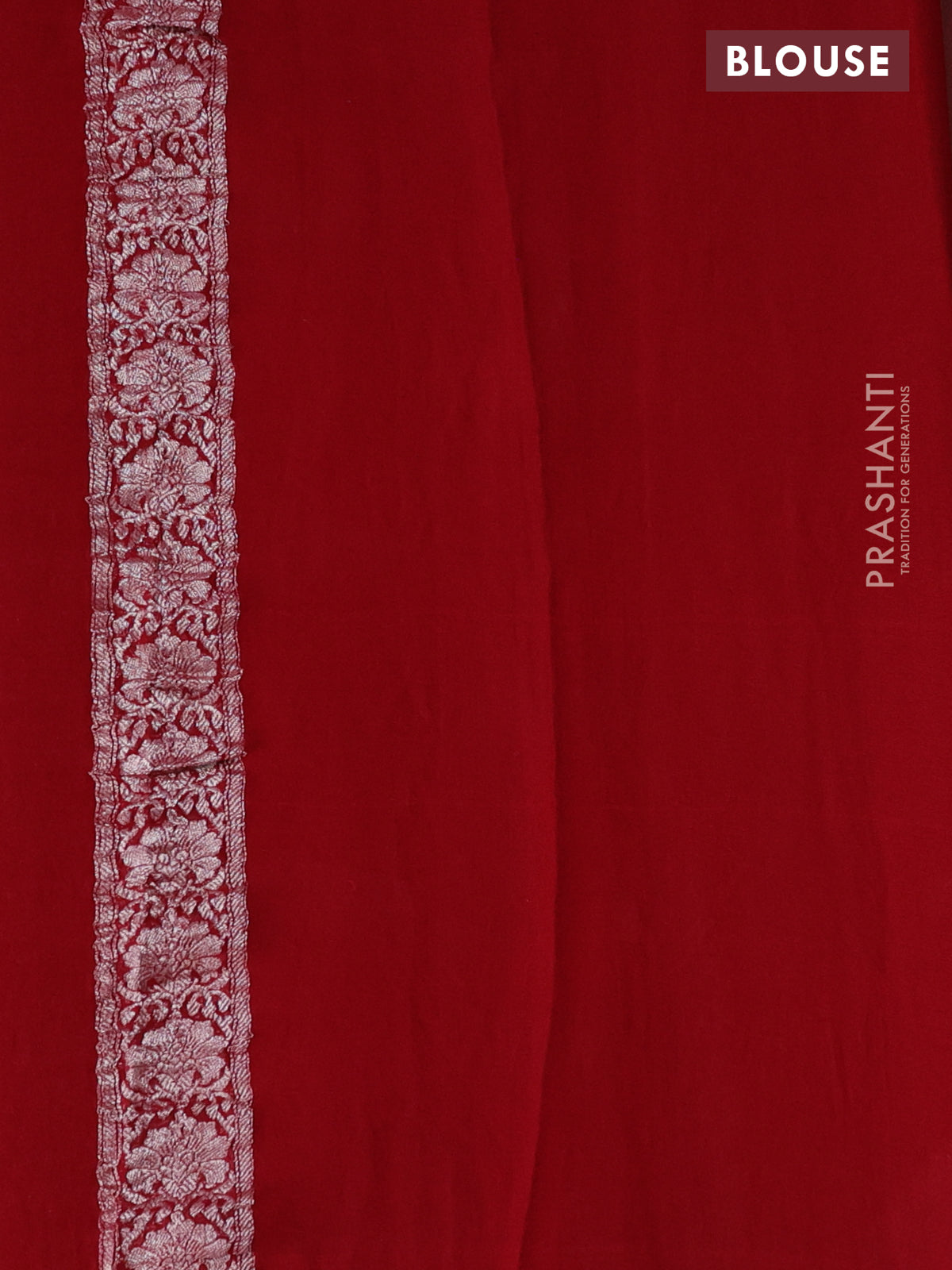 Banarasi chiffon silk saree pastel brown and red with silver zari woven buttas and silver zari woven border