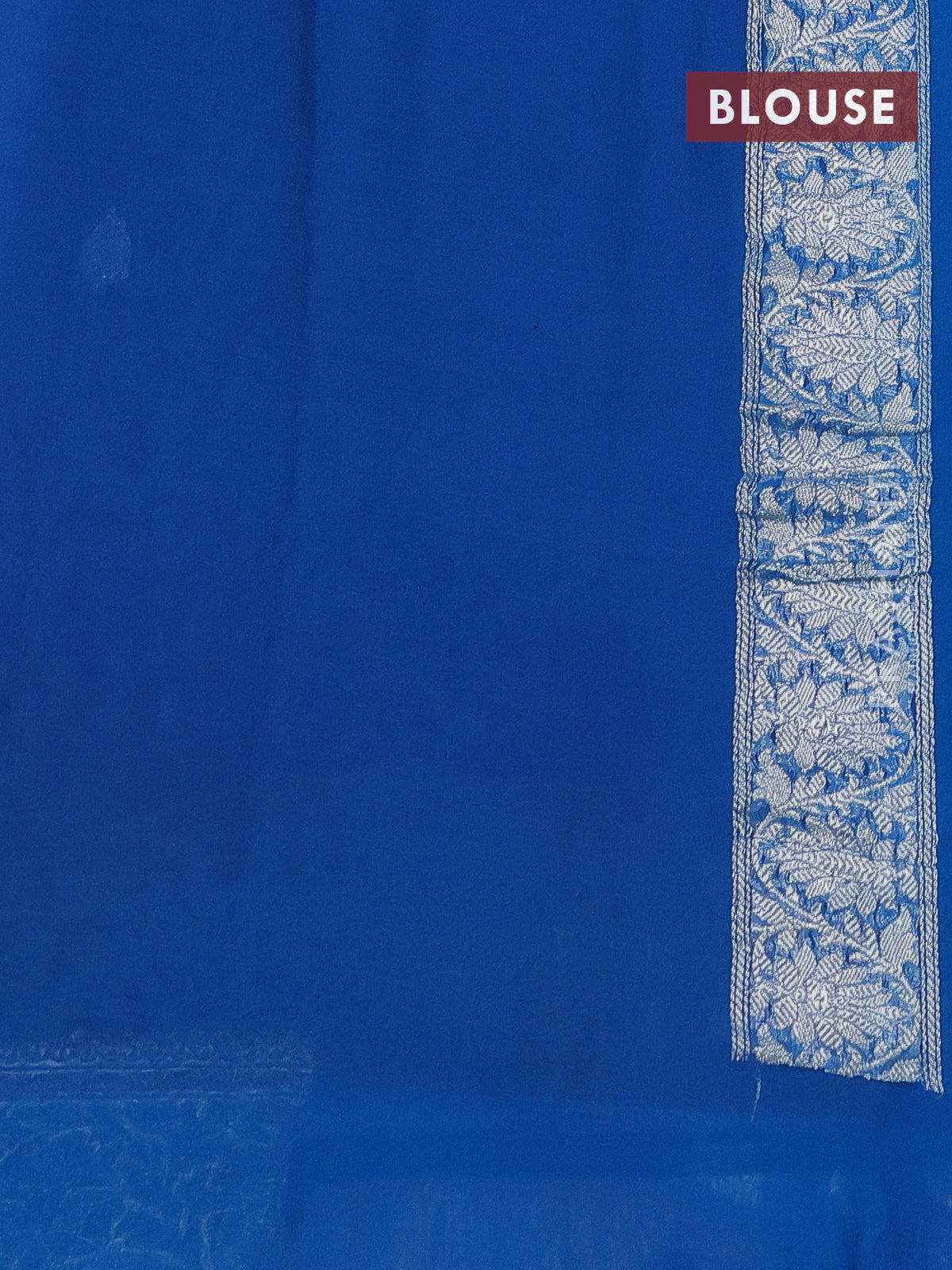 Banarasi chiffon silk saree purple and cs blue with silver zari woven buttas and silver zari woven border