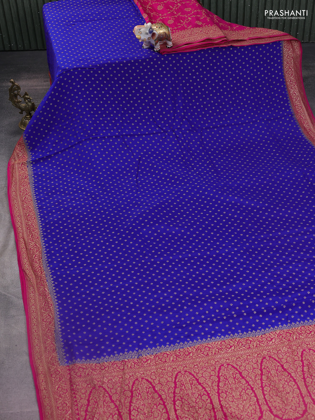 Banarasi crepe partly saree blue and pink with woven buttas and woven border