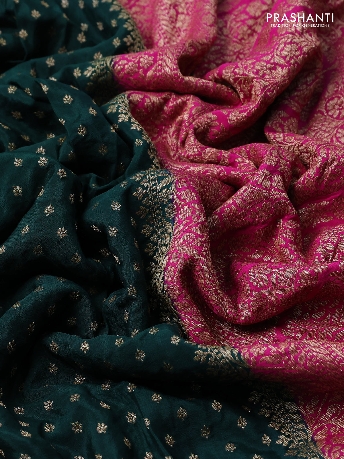 Banarasi crepe partly saree green and pink with woven buttas and woven border