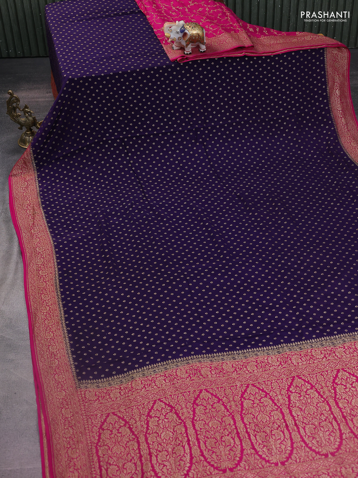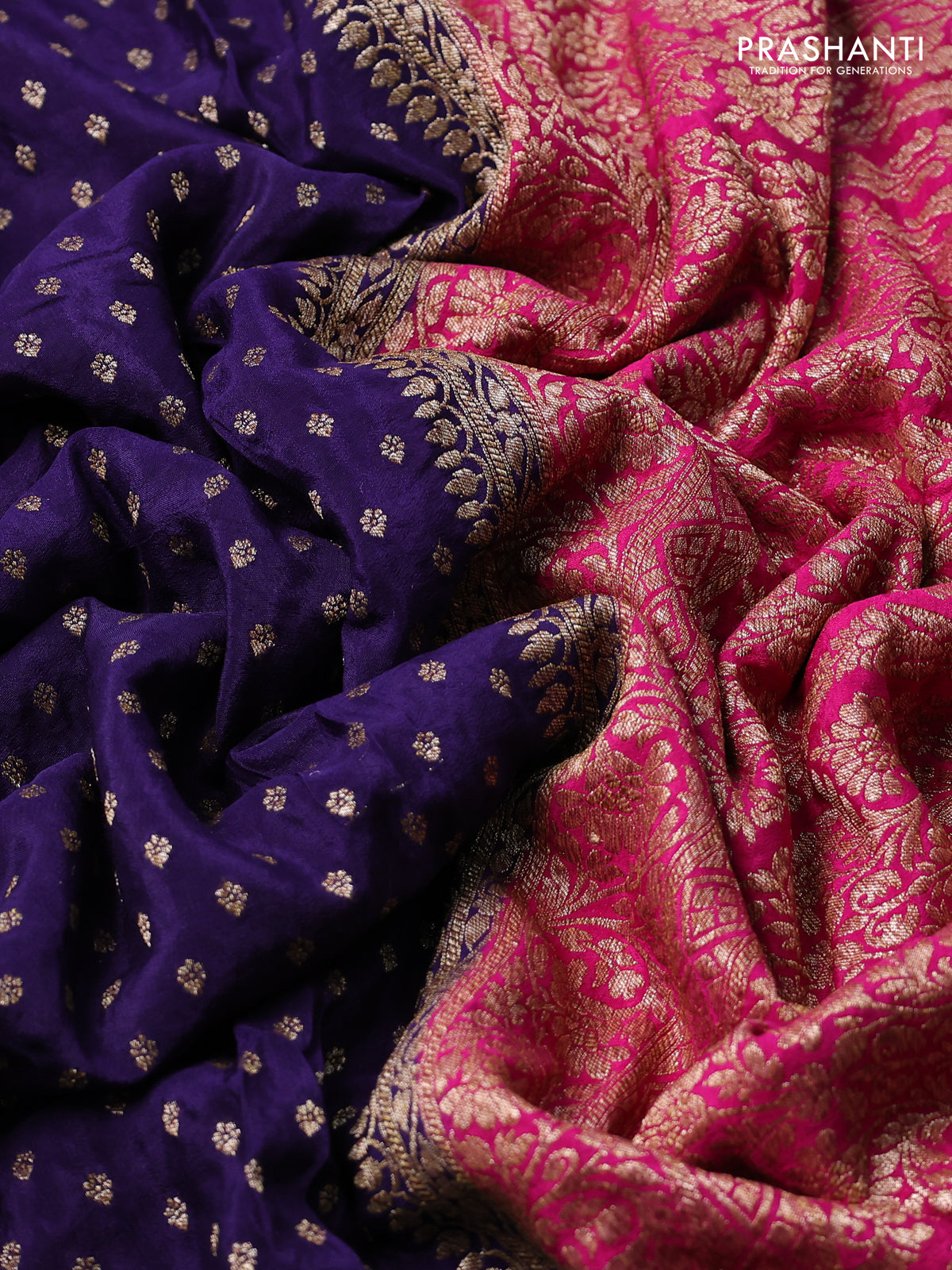 Banarasi crepe partly saree violet and pink with woven buttas and woven border