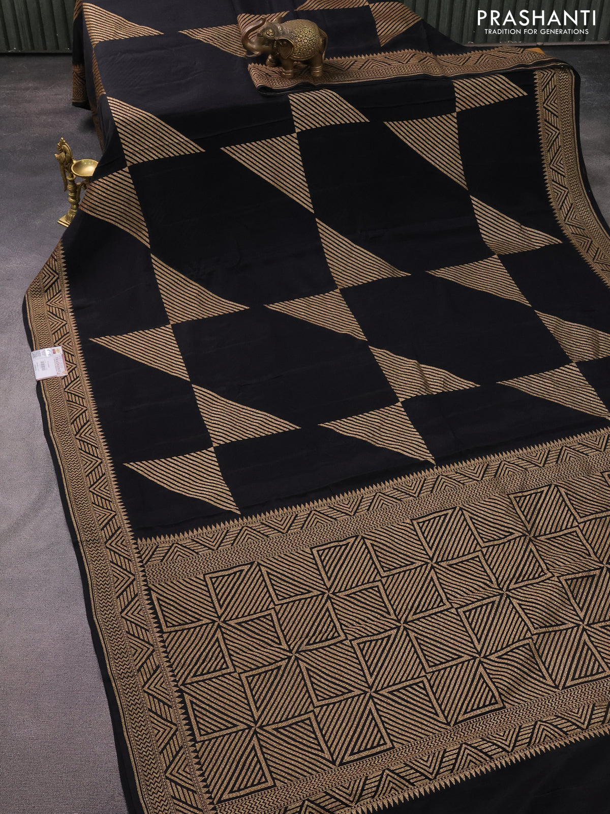Banarasi crepe saree black with allover thread & zari weaves and woven border