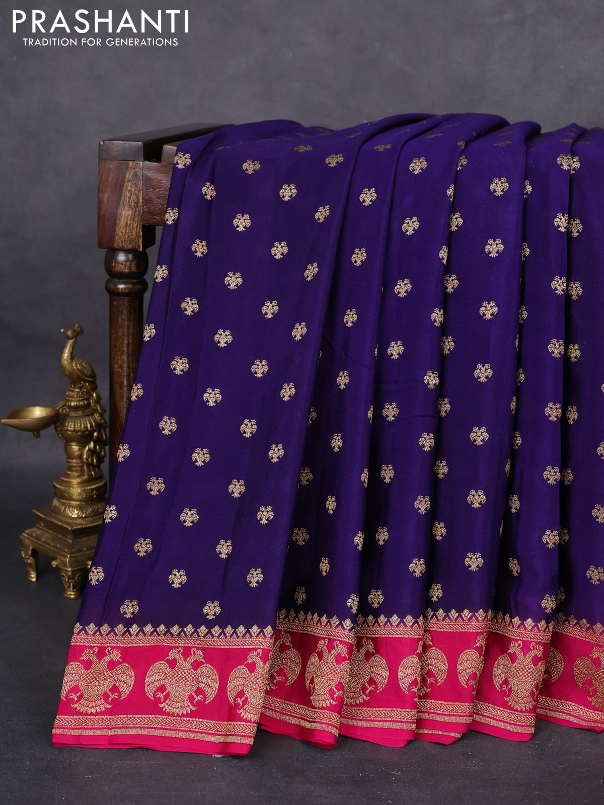 Pure Banarasi Crepe sarees featuring a fluid drape and graceful sheen, offering a perfect blend of heritage craftsmanship and modern elegance. Curated by Prashanti for effortless luxury and timeless style.
