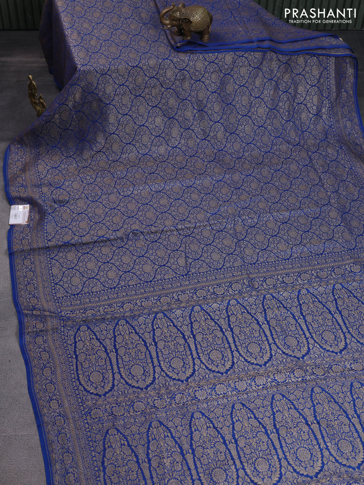 Banarasi crepe saree cs blue with allover thread & zari woven brocade weaves and woven border