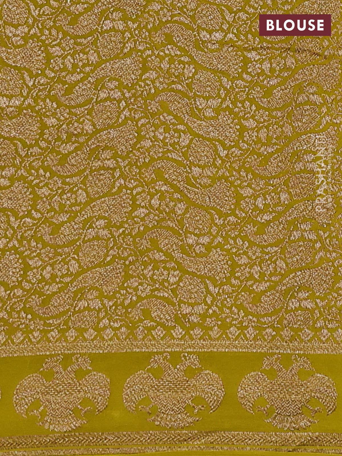 Banarasi crepe saree green and lime yellow with woven buttas and woven border