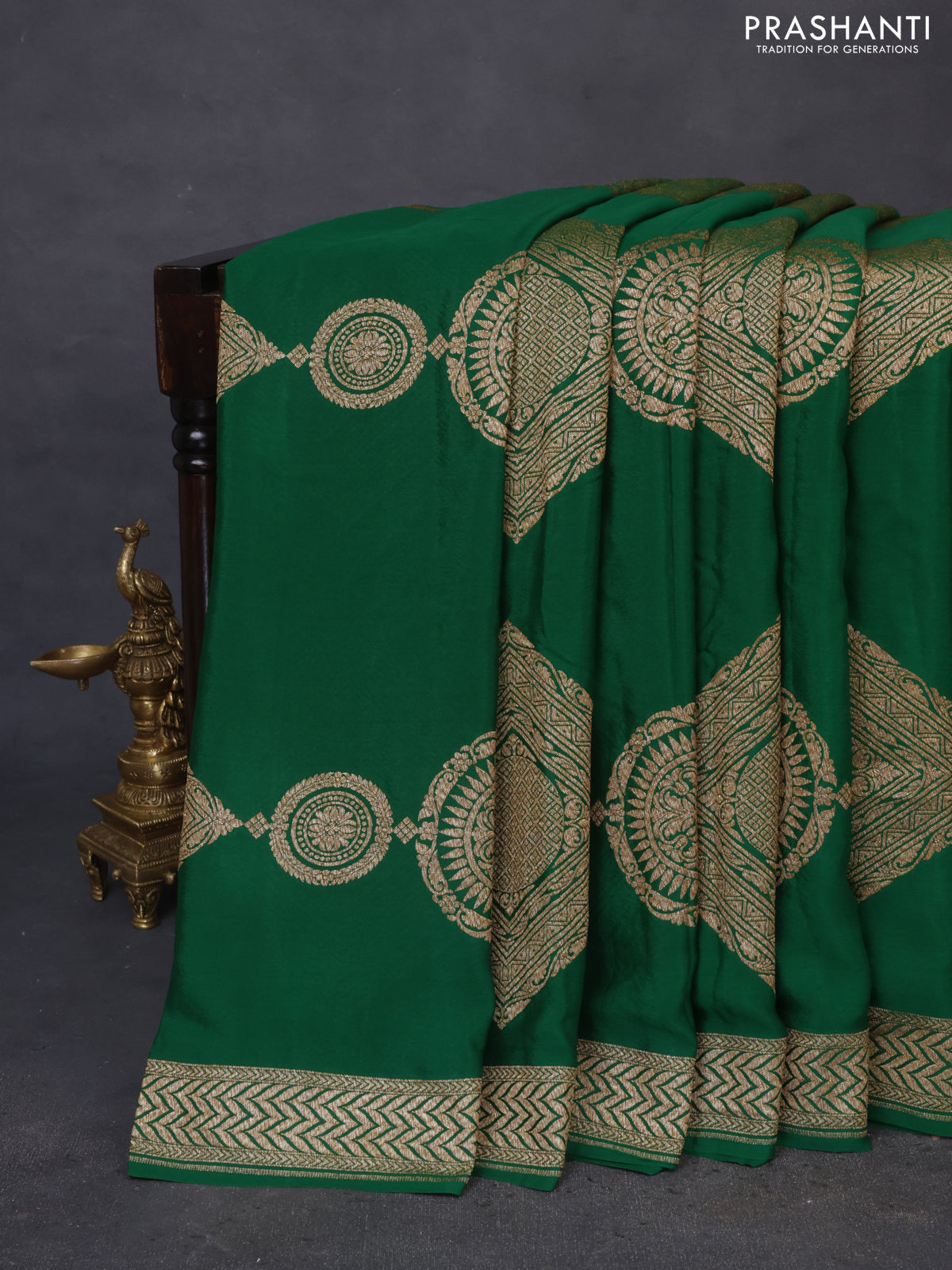 Banarasi crepe saree green with thread & zari woven buttas and woven border
