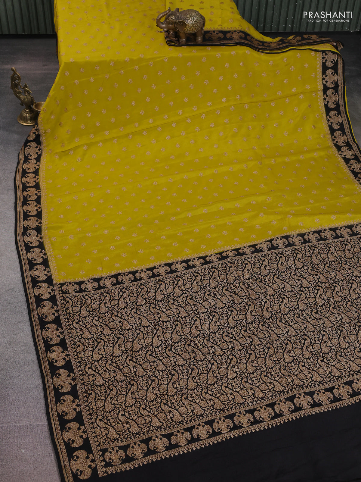 Banarasi crepe saree lime yellow and black with woven buttas and woven border