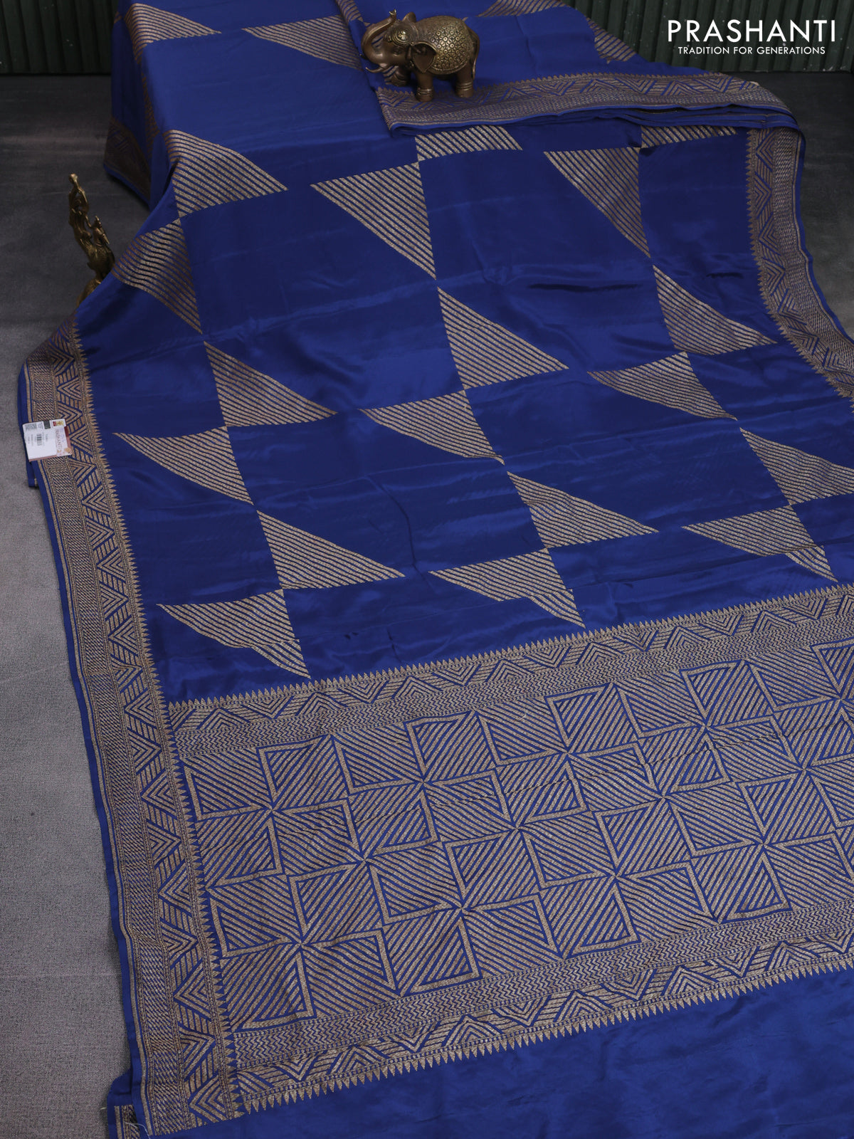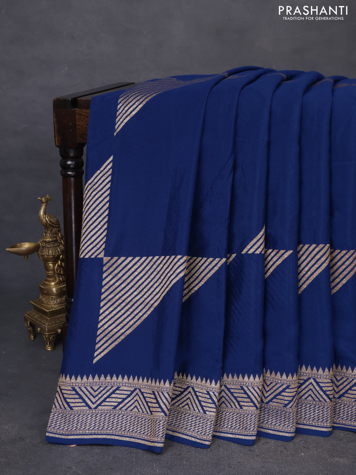 Banarasi crepe saree peacock blue with allover thread & zari geometric weaves and woven border