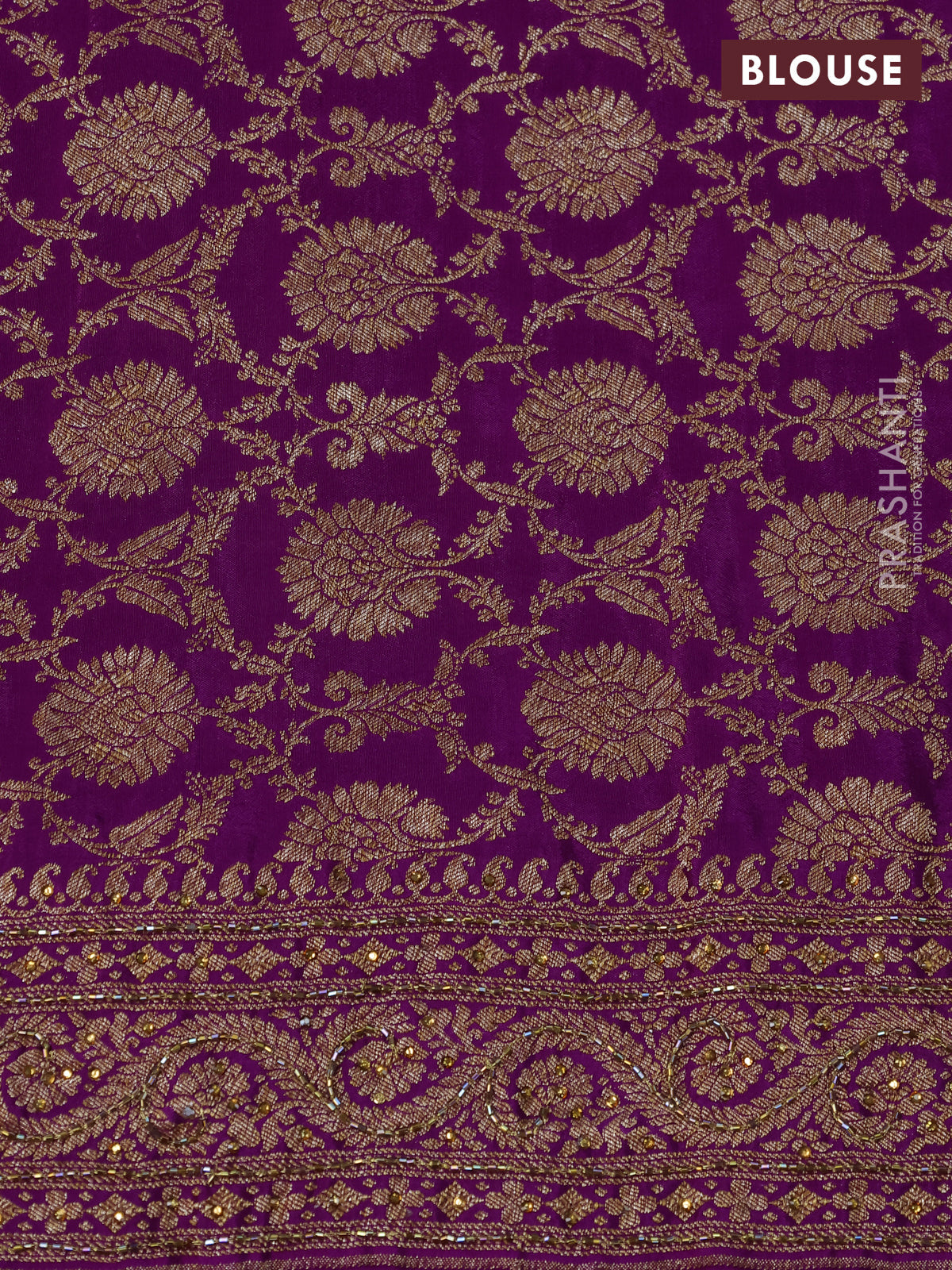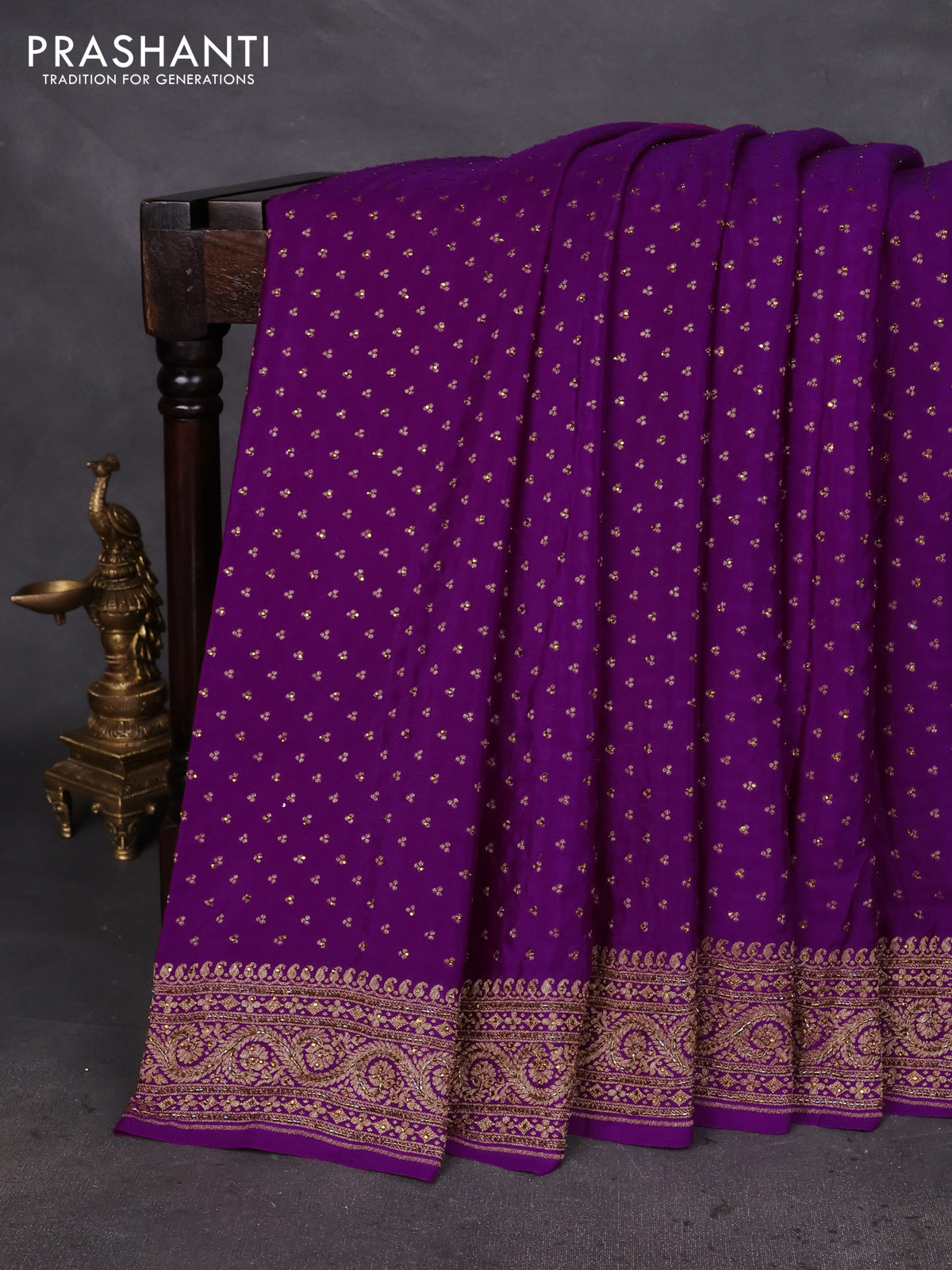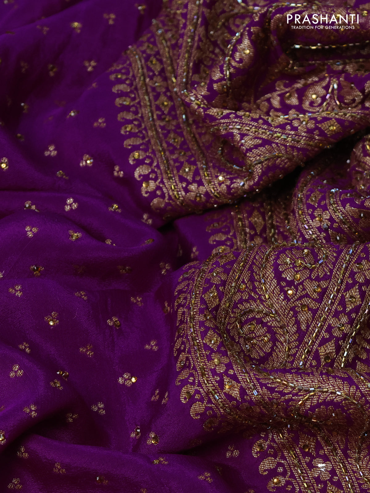 Banarasi crepe saree purple with allover woven buttas & stone work and beaded work border
