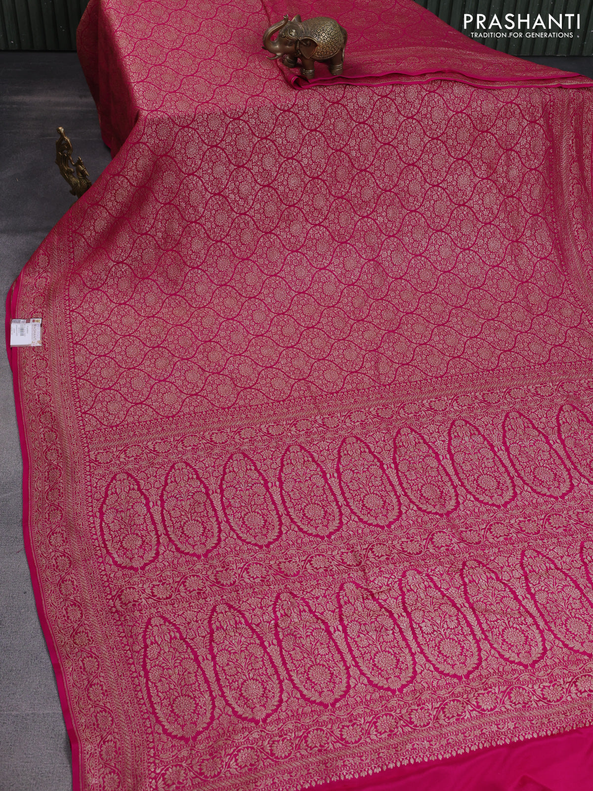 Banarasi crepe saree rani pink with allover thread & zari woven brocade weaves and woven border