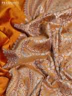 Banarasi crush crepe saree mustard yellow with plain body and zari woven border