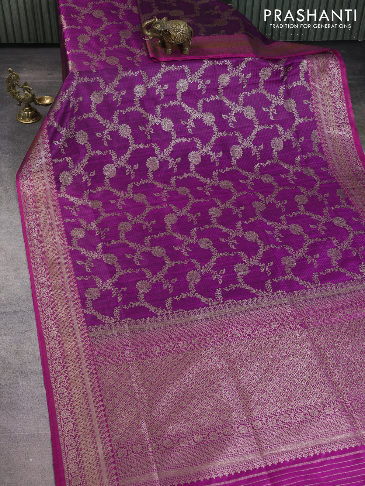 Banarasi dupion silk saree purple and pink with allover thread & zari weaves and woven border
