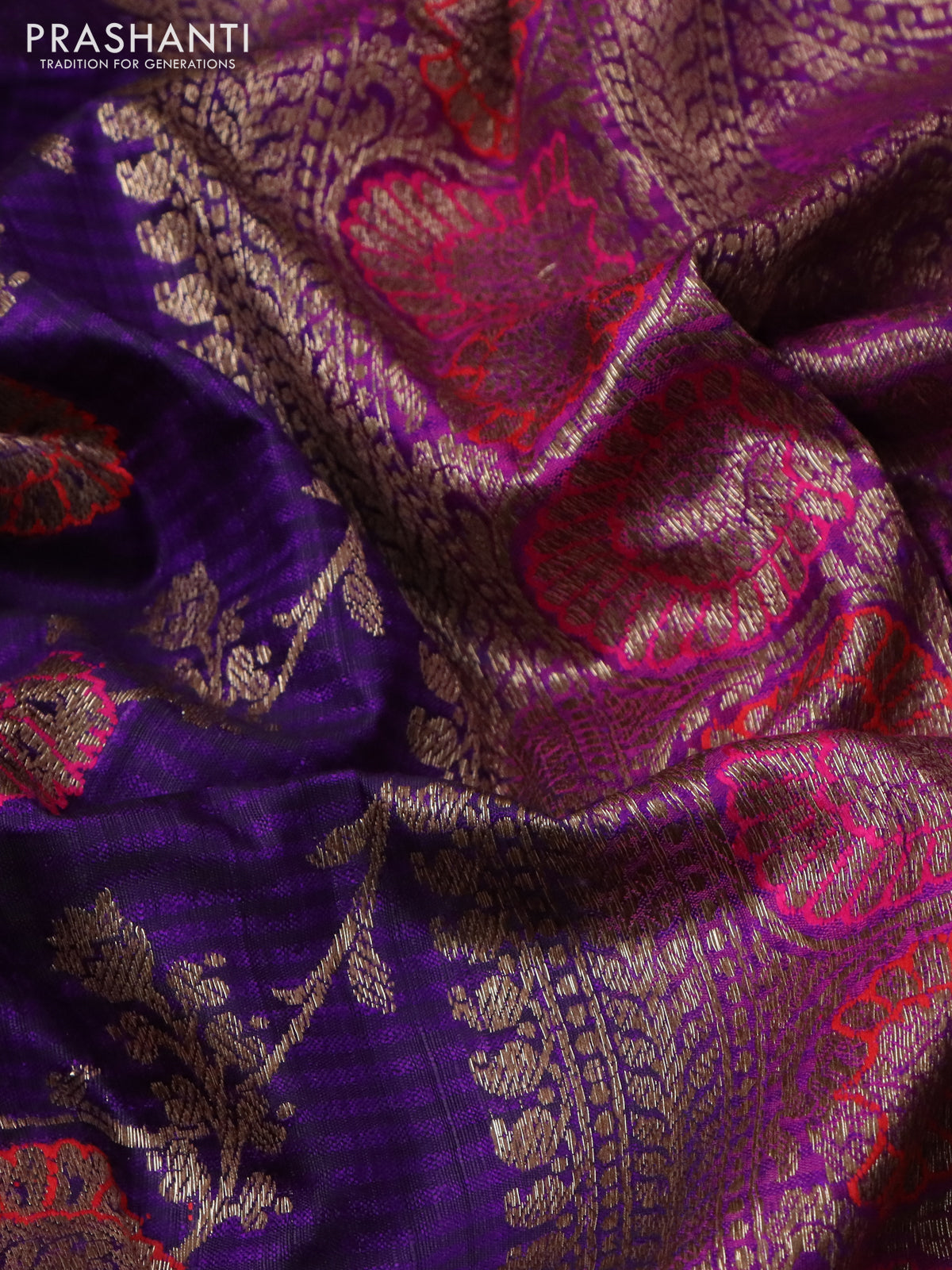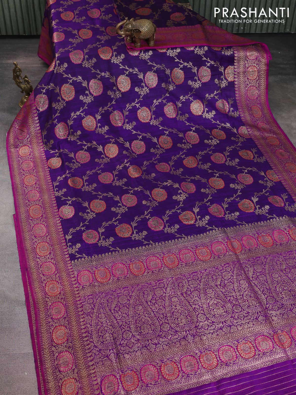 Banarasi dupion silk saree violet and purple with allover thread & zari floral weaves and woven border