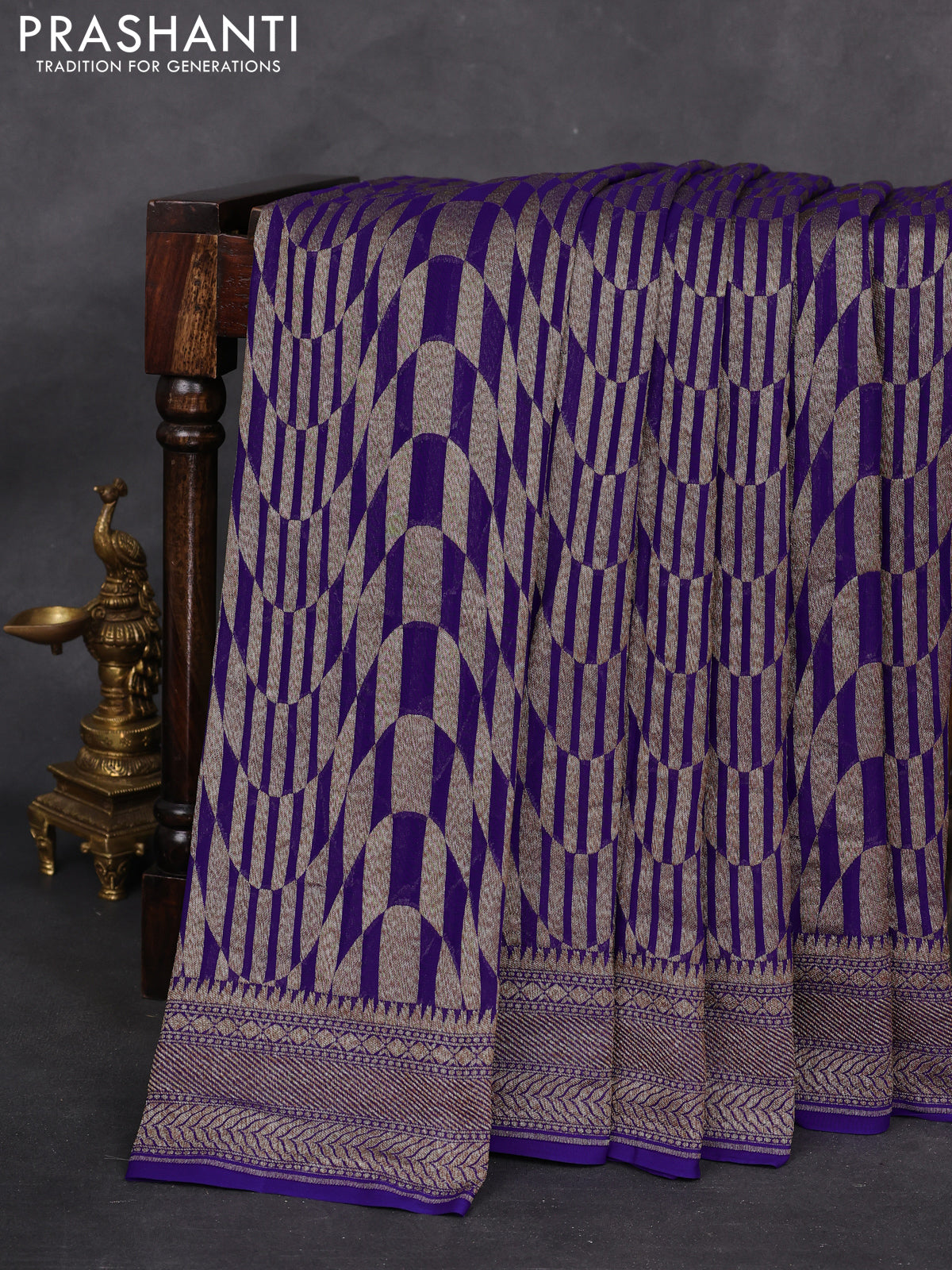 Pure Banarasi Georgette sarees celebrated for their fluid drape and timeless Banarasi elegance, perfect for graceful festive occasions and cherished gifting. Silk Mark certified and one of Prashanti’s most admired and signature collections.