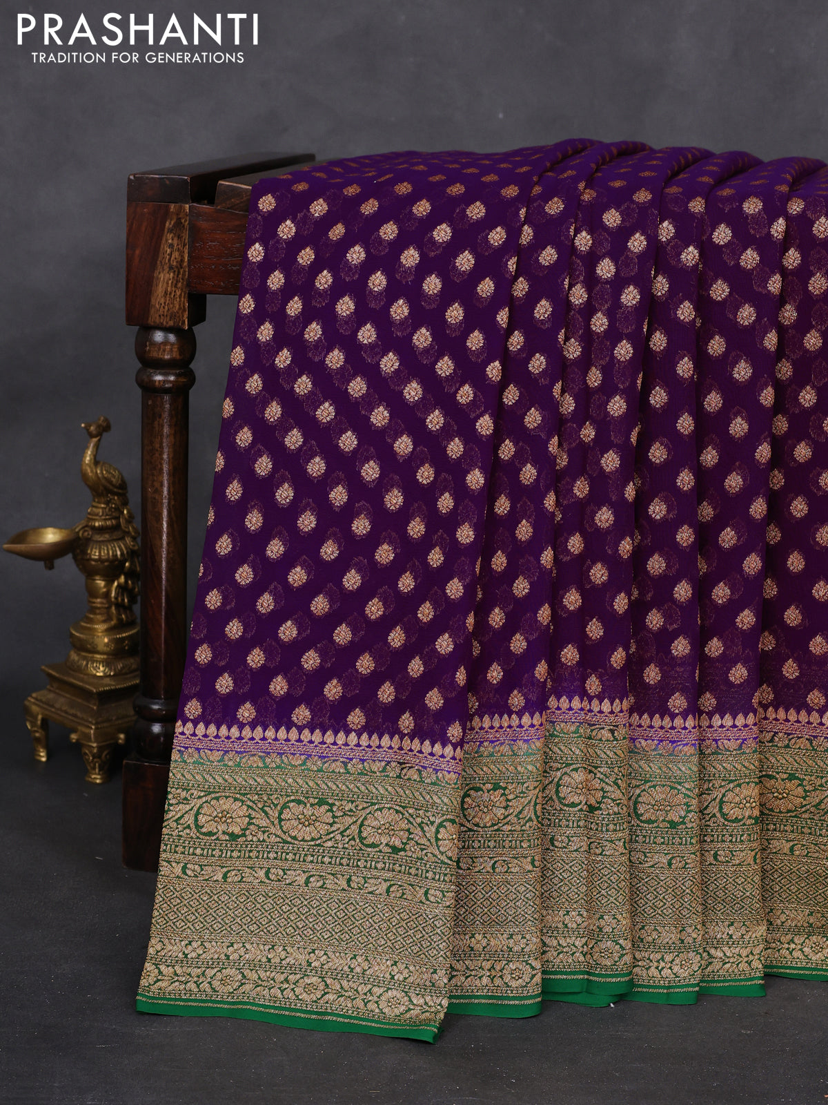 Banarasi georgette saree deep violet and green with allover woven buttas and woven border