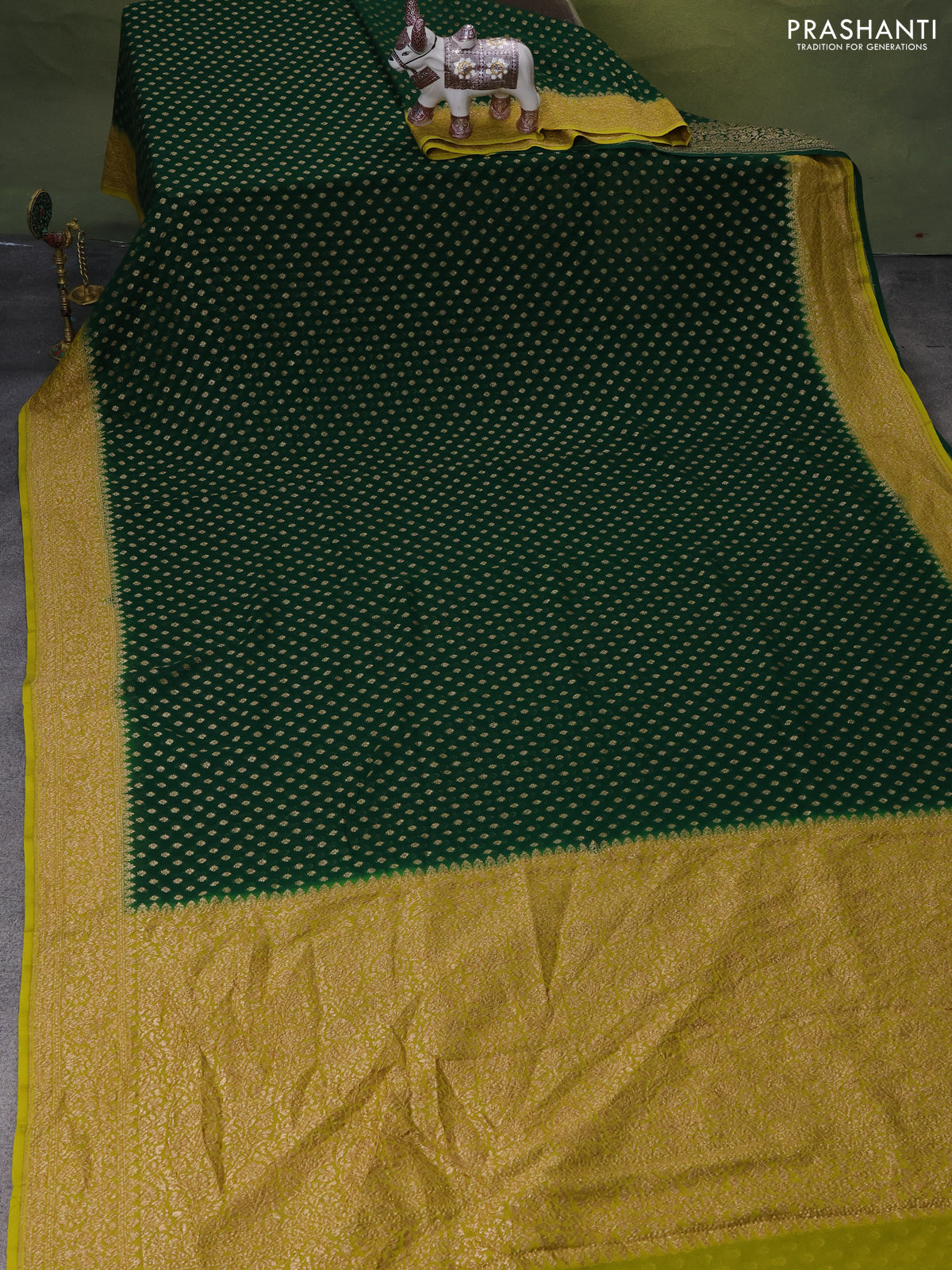 Banarasi georgette saree green and lime green with allover woven buttas and woven border