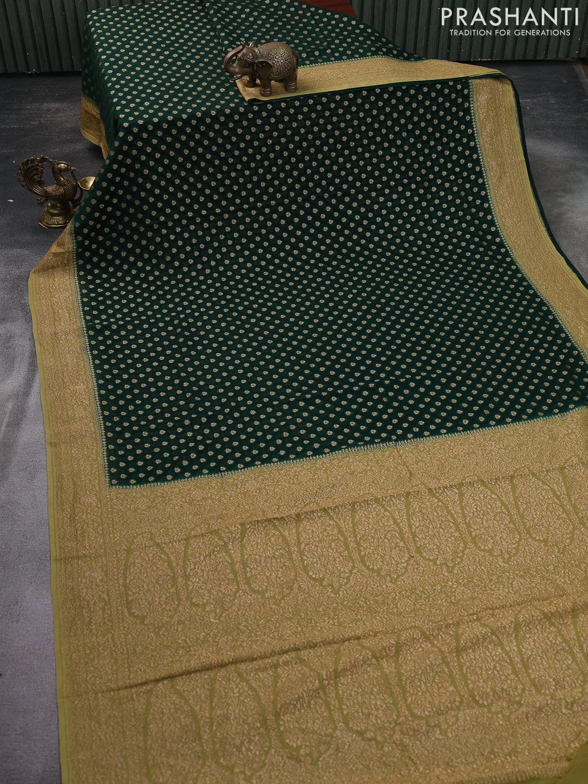 Banarasi georgette saree green and yellow shade with allover woven buttas and woven border