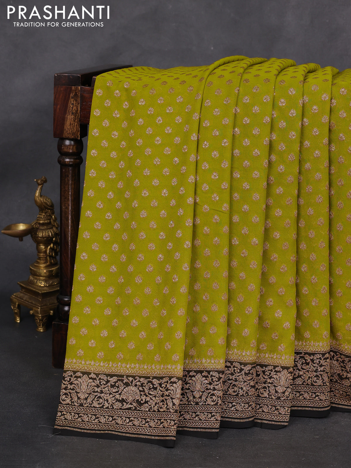 Banarasi georgette saree lime green and black with allover woven buttas and woven border