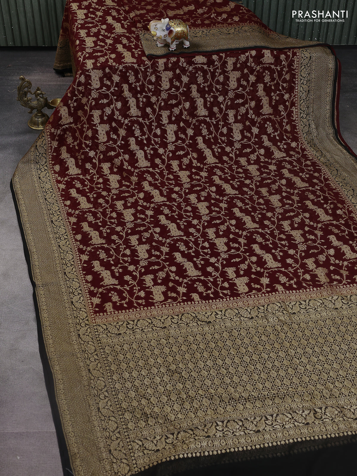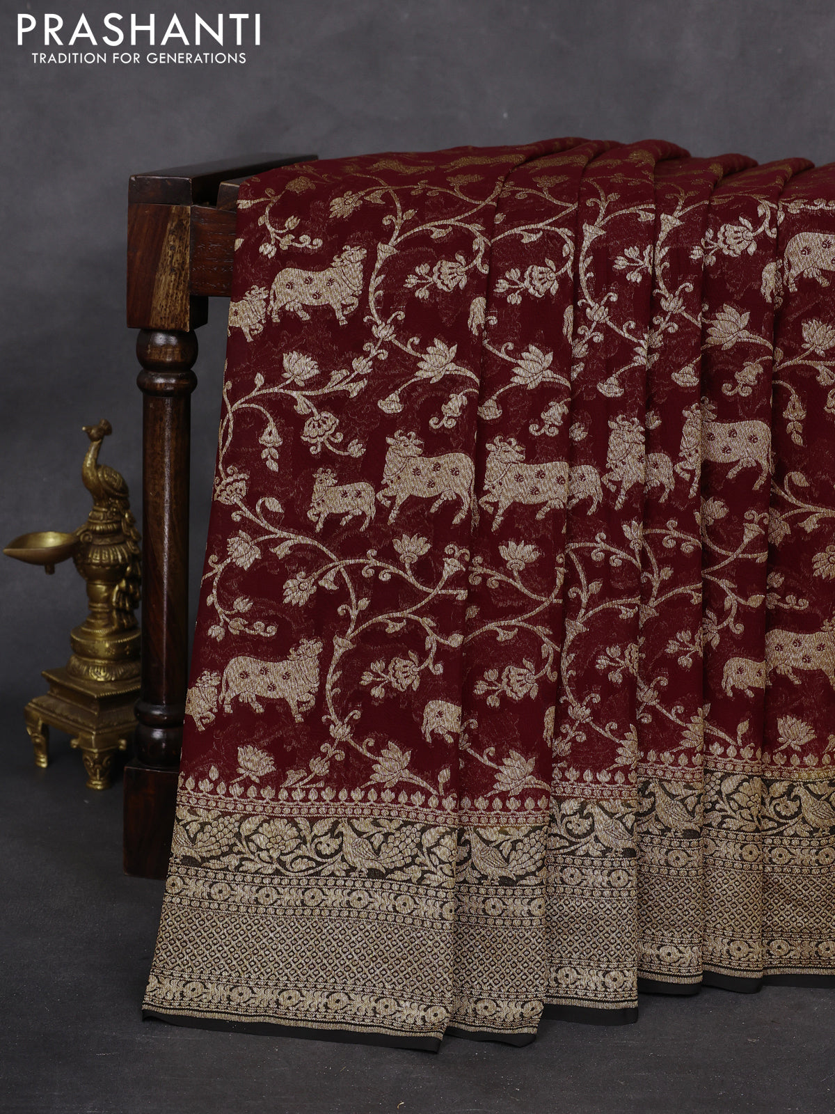 Banarasi georgette saree maroon and black with allover thread & zari weaves and woven border