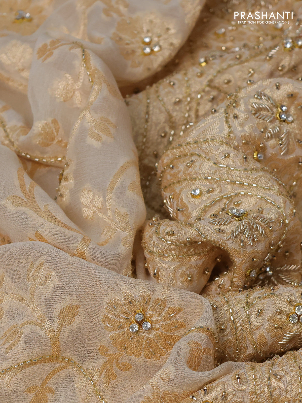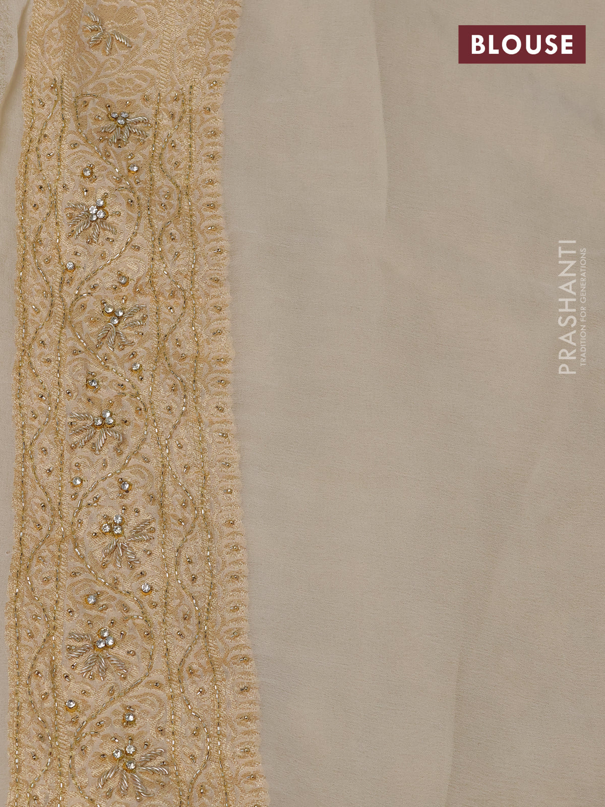 Banarasi georgette saree off white with allover jaal weaves & stone work and zardosi work border