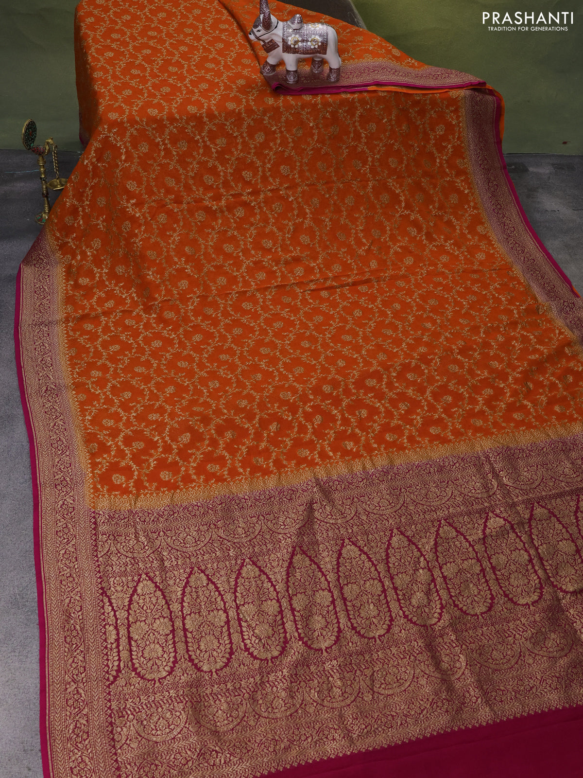 Banarasi georgette saree orange and pink with allover thread & zari weaves and woven border